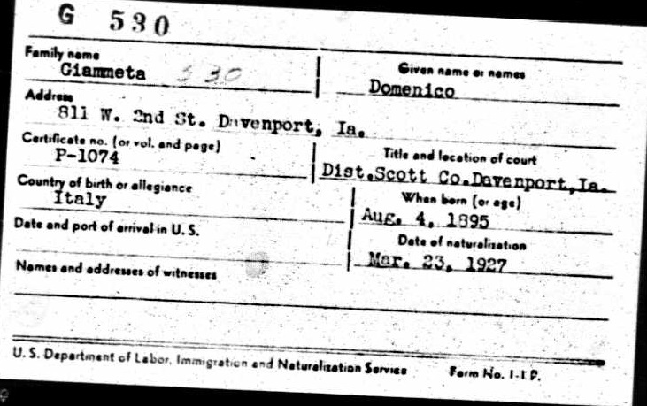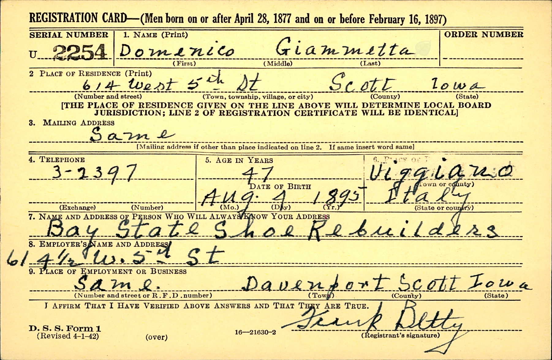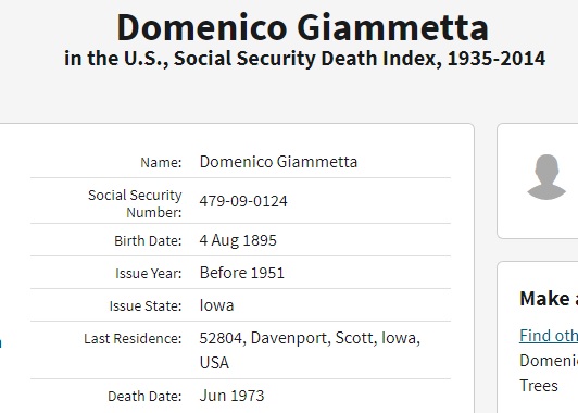 Domenico "Dominic" Giammetta was born on August 4, 1895 in Viggiano, Potenza, Basilicata, Italy. He and