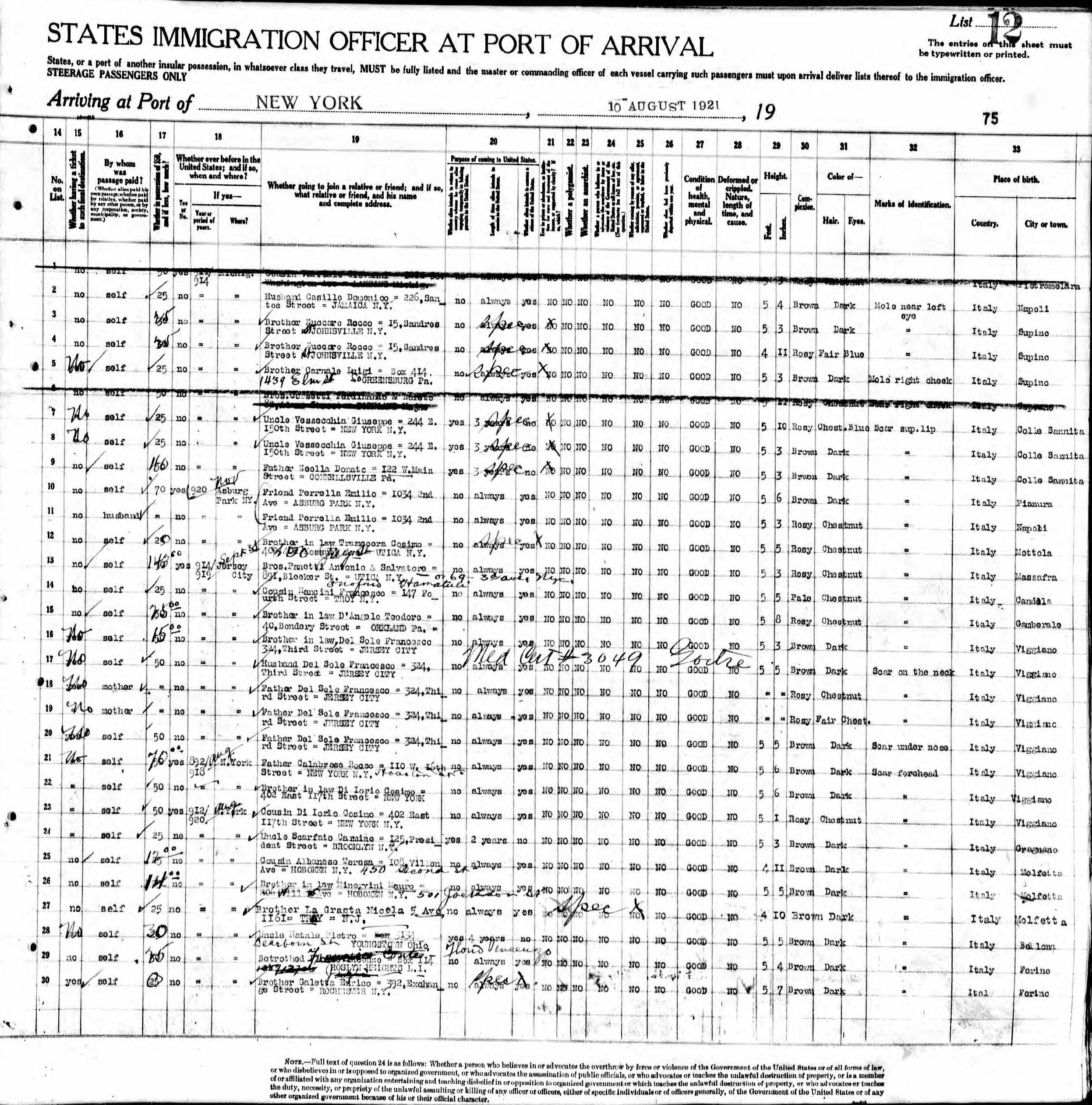 Giametta Family 1921 Ship Arrival Manifest, Lines 22-23