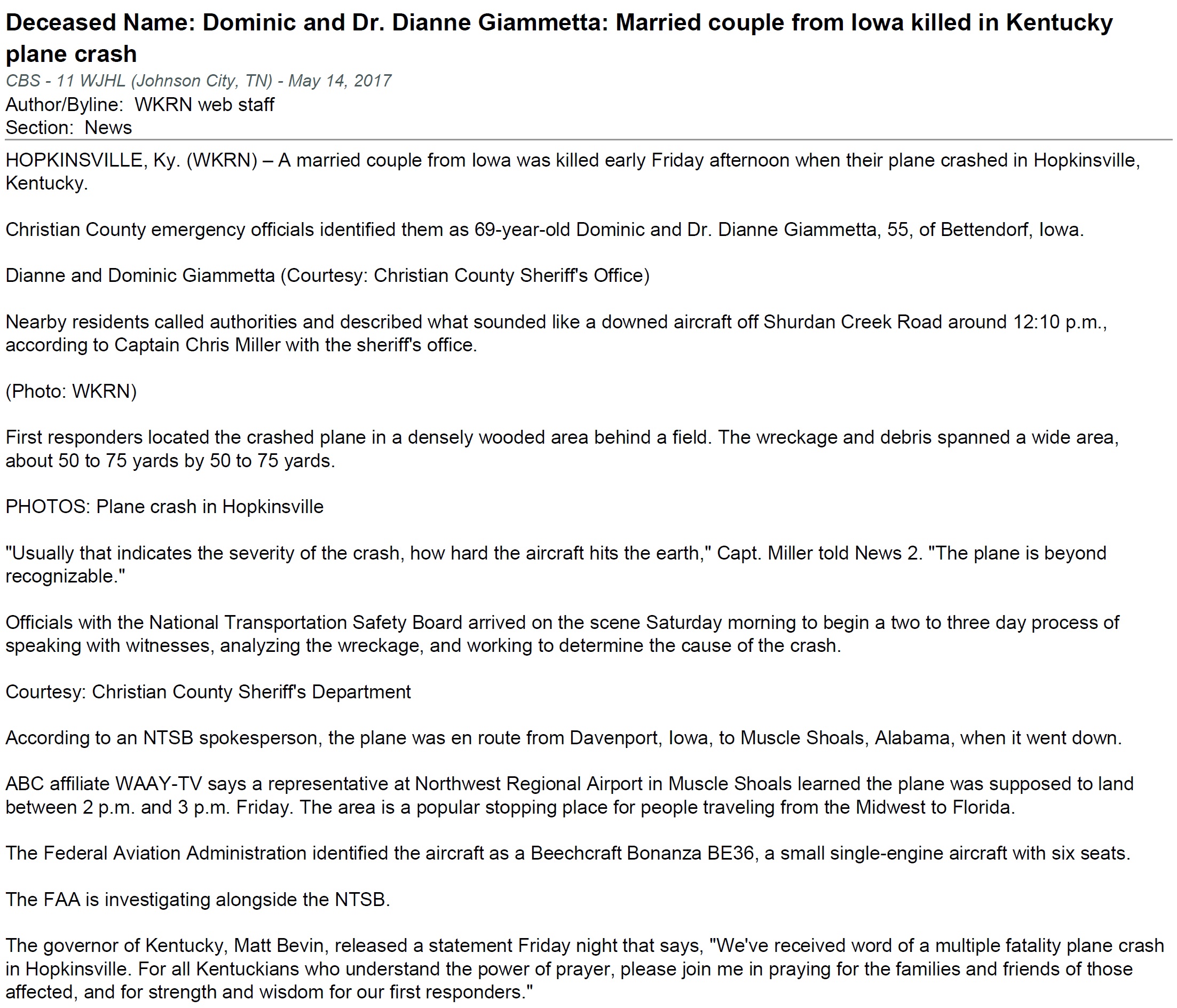 Domenic Michael Giammetta were married on May 10, 1997 in Moline, Rock Island, Illinois, USA. She died on May 12, 2017, at age ~55, in Hopkinsville, Christian, Kentucky, USA. She was buried in Cremation.