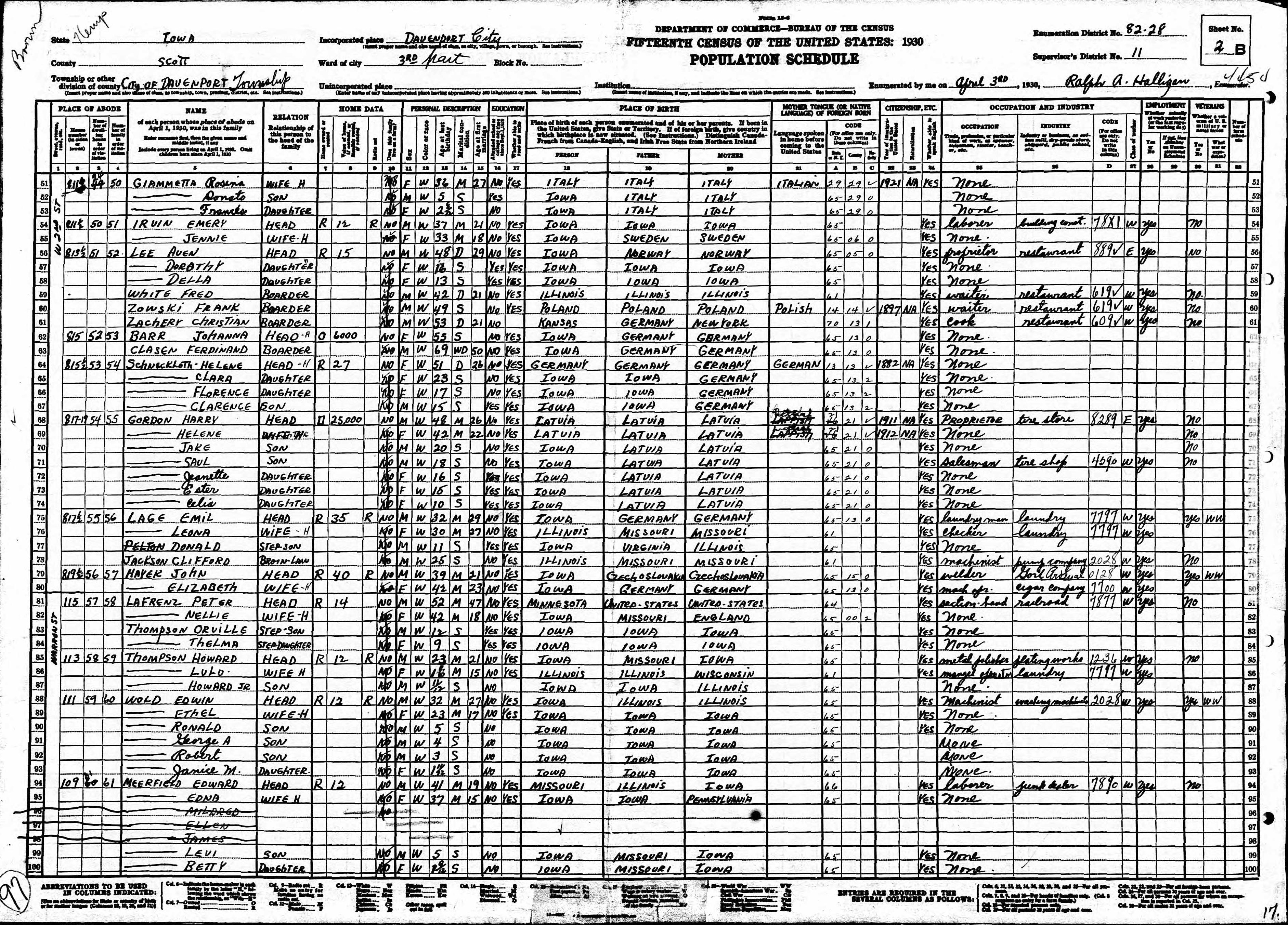 Giametta Family 1930 Federal Census Iowa, Line 50