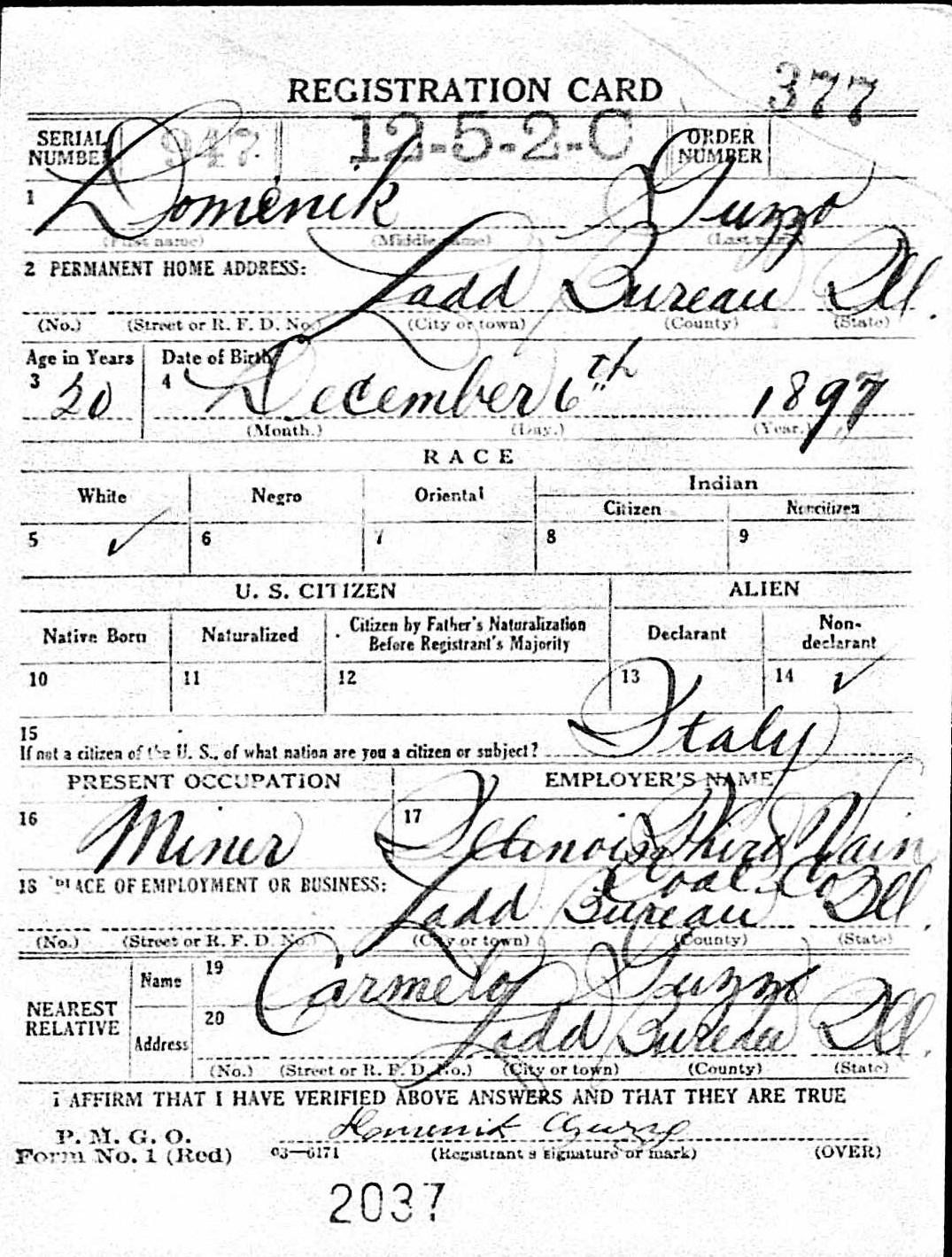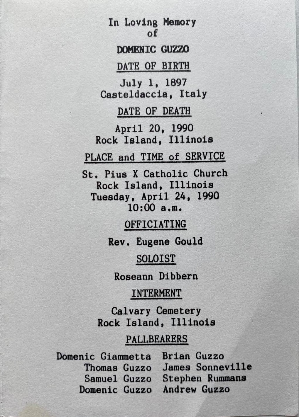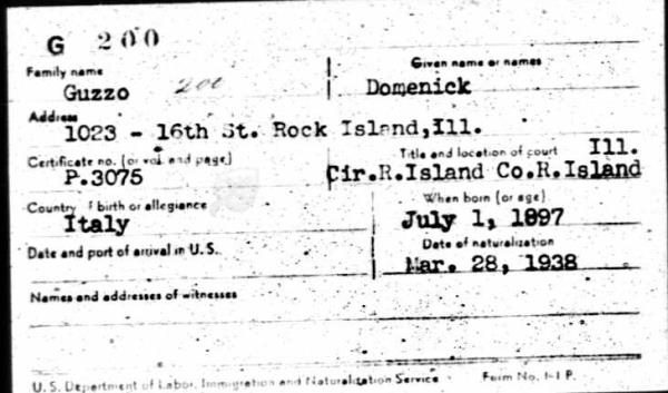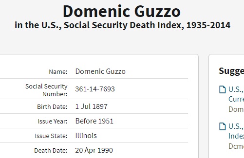 Domenico "Dominic" Guzzo was born on July 1, 1897 in Casteldaccia, Palermo, Sicily, Italy. He and
