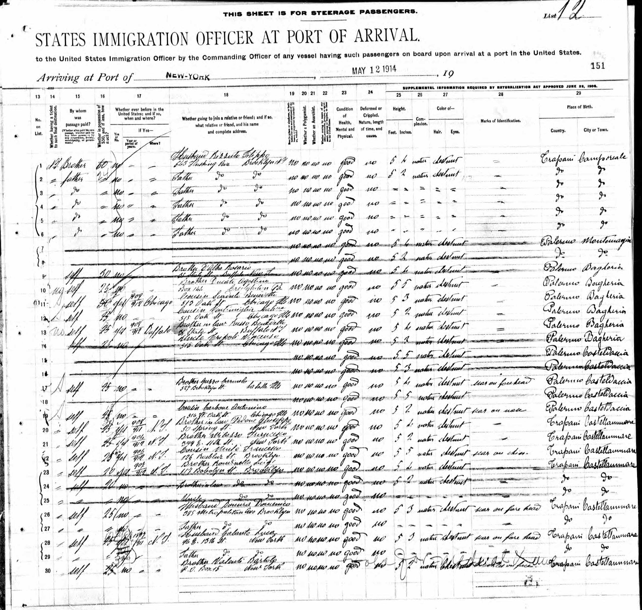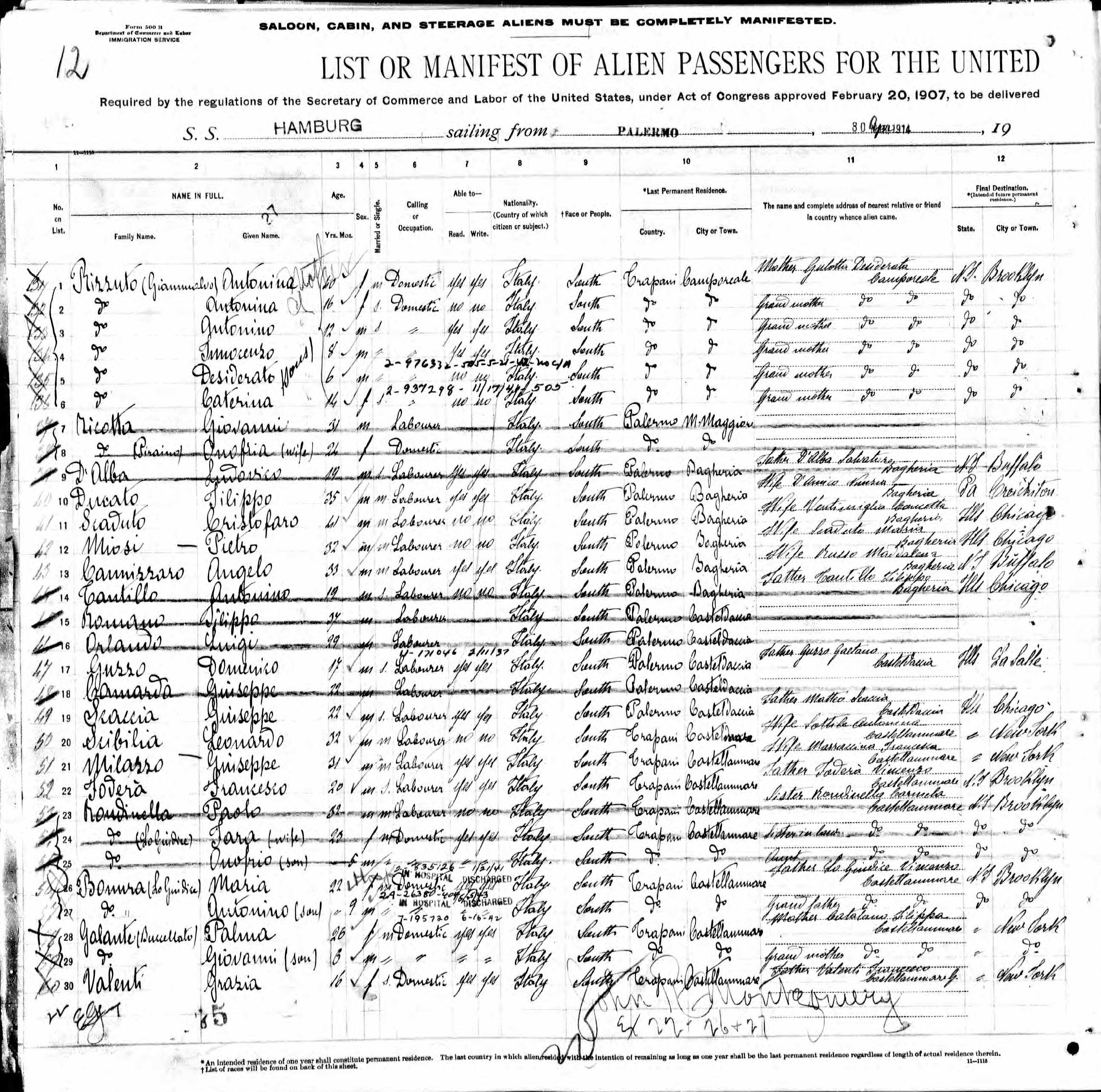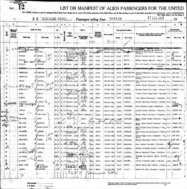 Giametta Family 1921 Ship Departure Manifest, Lines 22-23