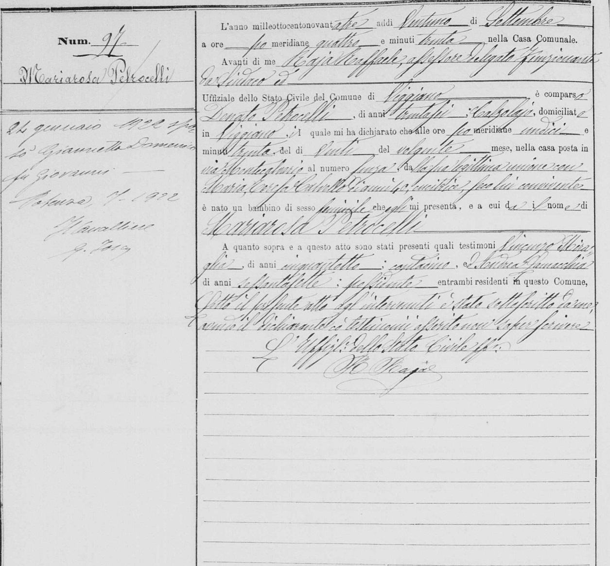 Mariarosa Petrocelli was born on September 20, 1893 in Viggiano, Potenza, Basilicata, Italy. She and