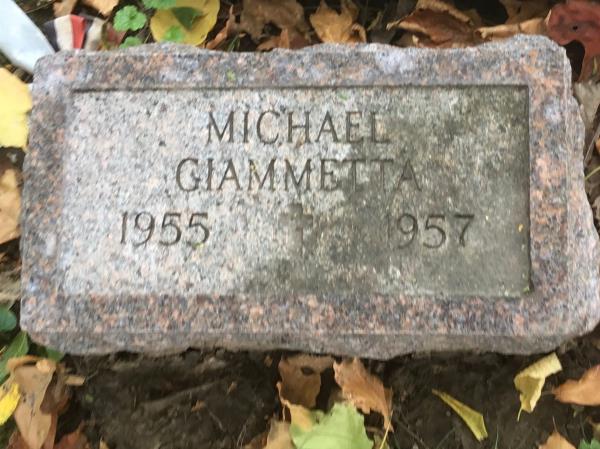 Michael Giammetta was born on January 8, 1954 in Davenport, Scott, Iowa, USA. He died on October 26, 1957, at age 3, in Glenwood Mills, Iowa, USA. He was buried in Mount Calvary Catholic Cemetery, Davenport, Iowa.
