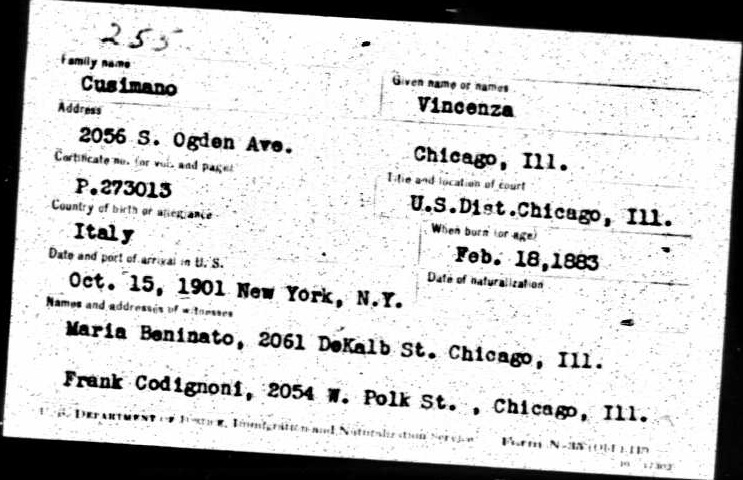 Vincenza "Frances" Cusimano was born on February 18, 1883 in Casteldaccia, Palermo, Sicily, Italy. She and