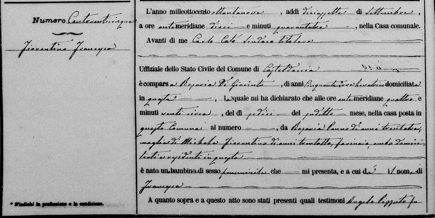 Michele Fiorentino were married on February 7, 1875 in Casteldaccia, Palermo, Sicily, Italy. She died.