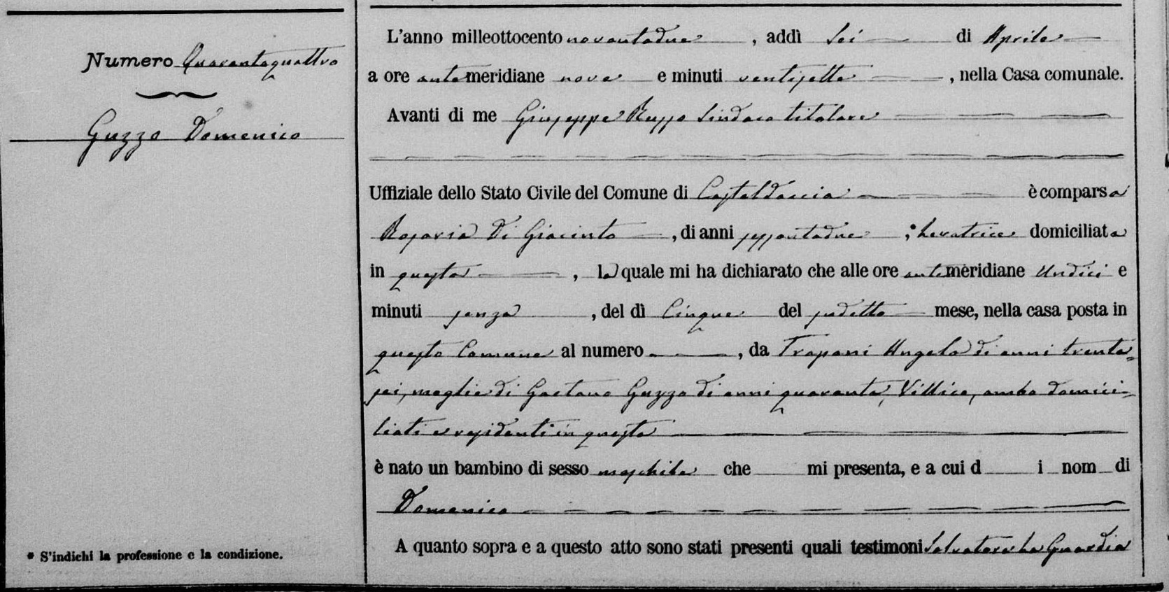 Domenico Guzzo was born on April 5, 1892 in Casteldaccia, Palermo, Sicily, Italy. He died on December 3, 1892, at age 0, in Casteldaccia, Palermo, Sicily, Italy.