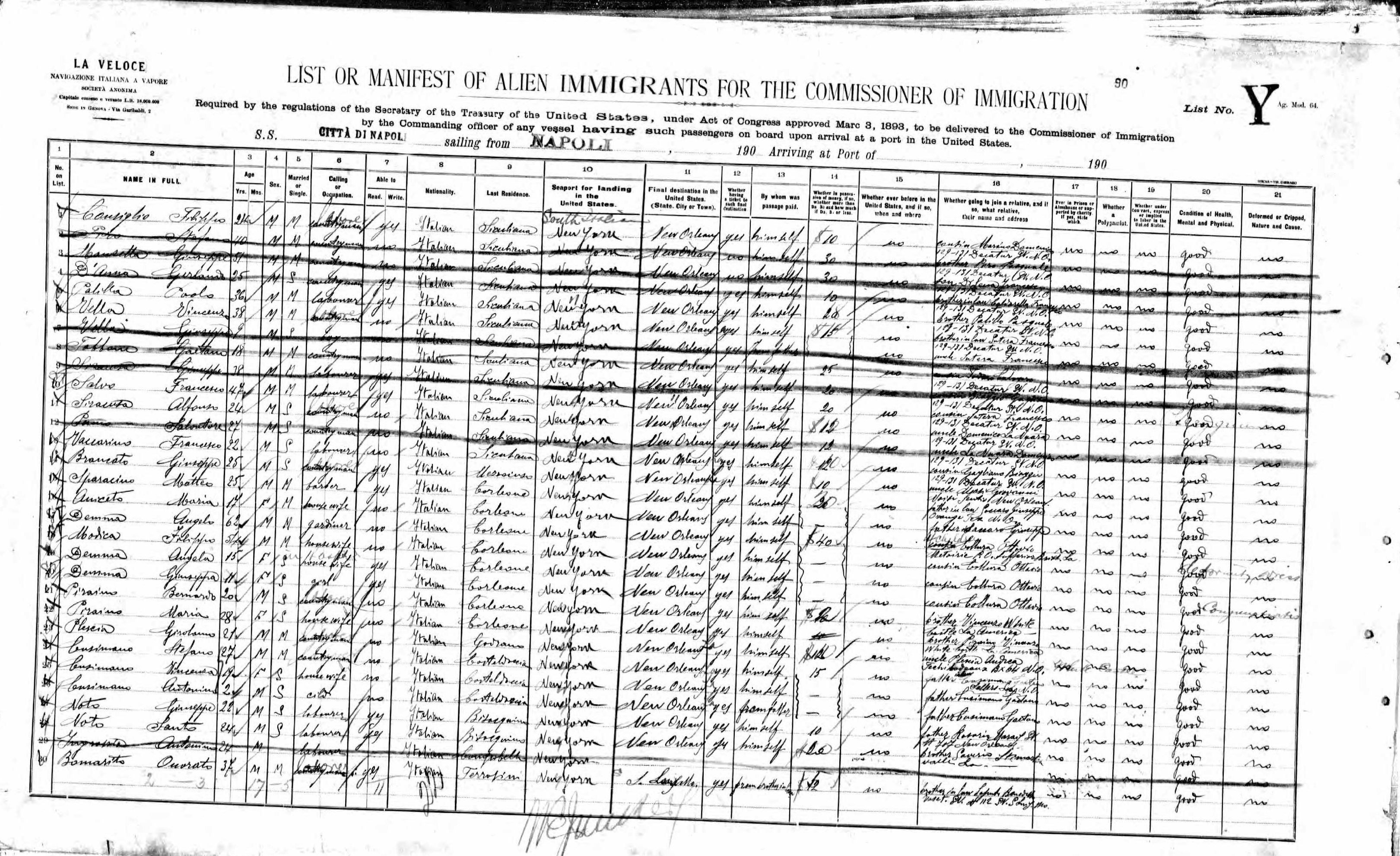 Cusimano Family 1900 Federal Census Louisiana, Lines 91-94