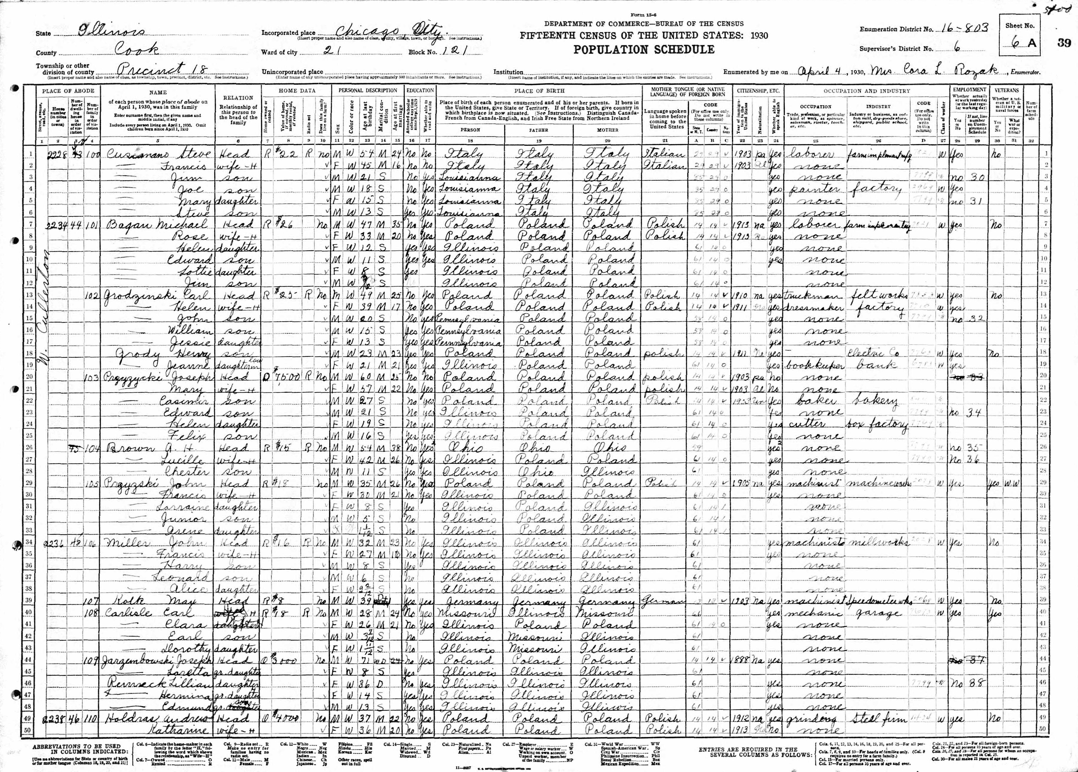 Cusimano Family 1930 Federal Census Illinois, Lines 1-6