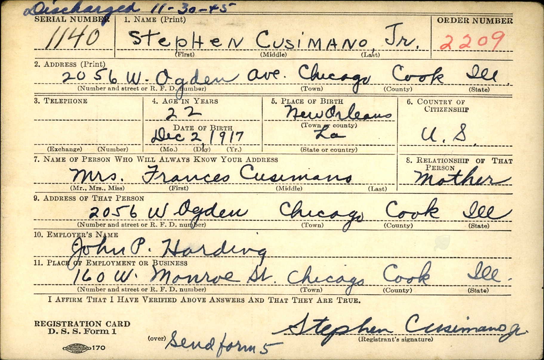 Stephen Cusimano, Jr., was born on December 2, 1917 in New Orleans, Louisiana, USA. He died.