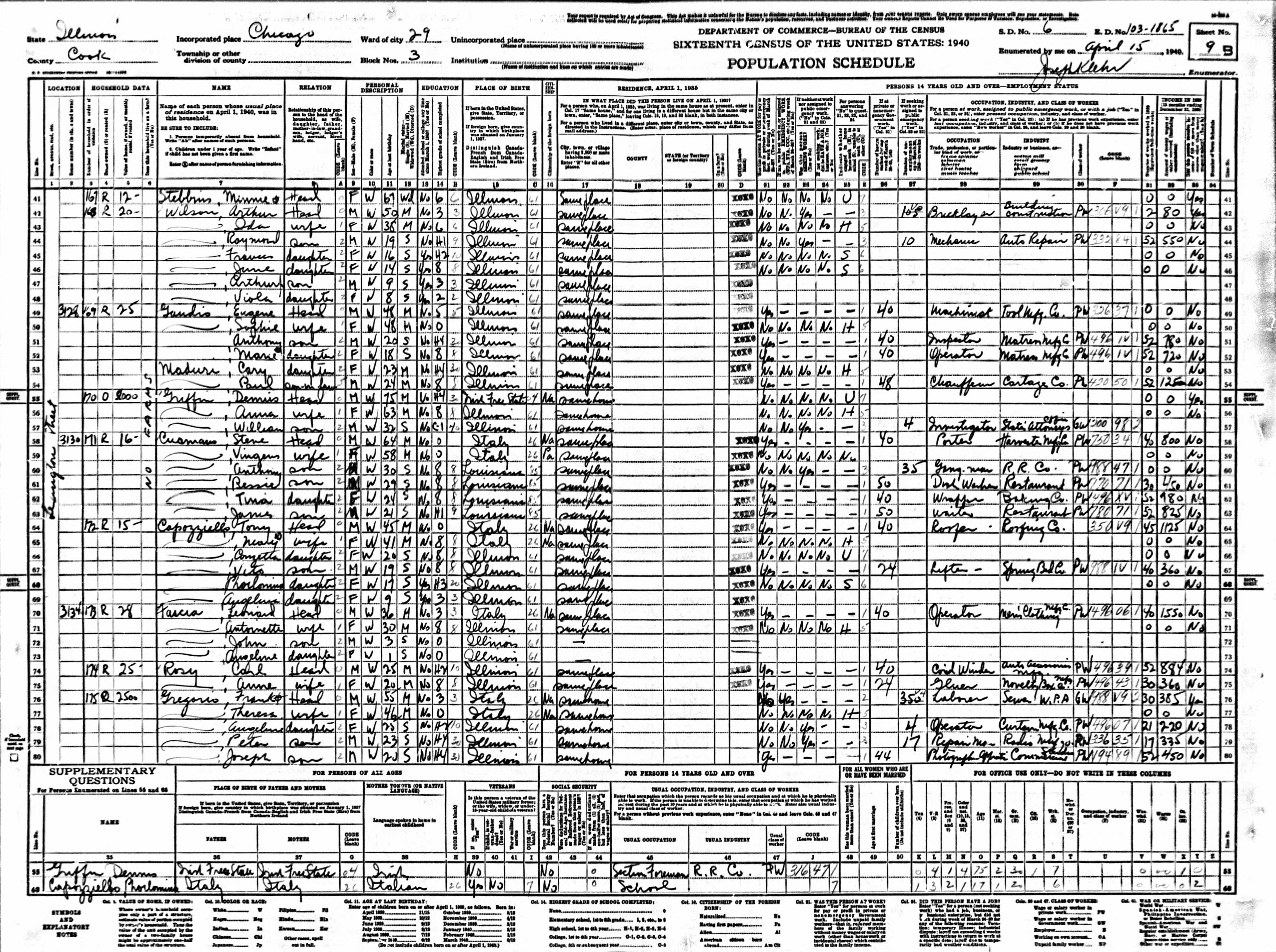 Cusimano Family 1940 Federal Census Illinois, Lines 58-63
