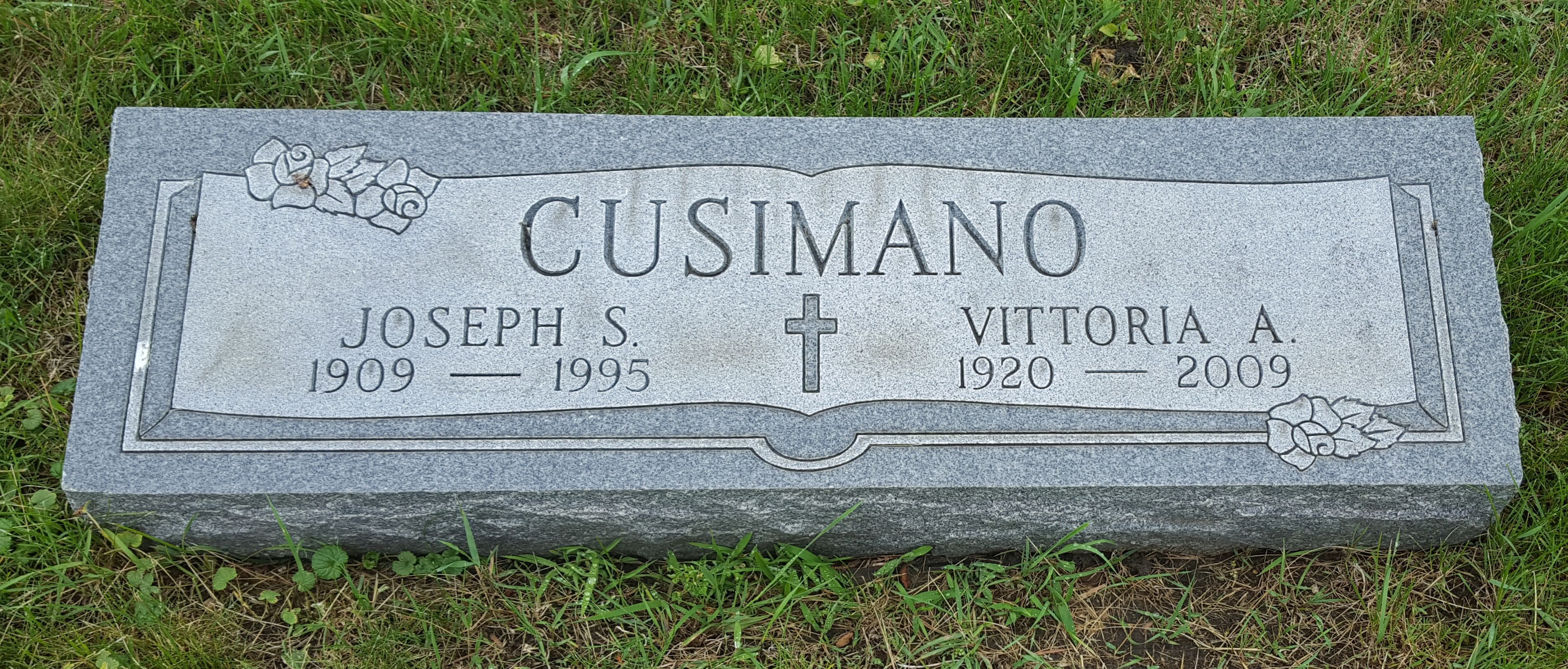 Joseph S. Cusimano were married. She died in 2009, at age ~89. She was buried in Elmwood Cemetery and Mausoleum, River Grove, Illinois.