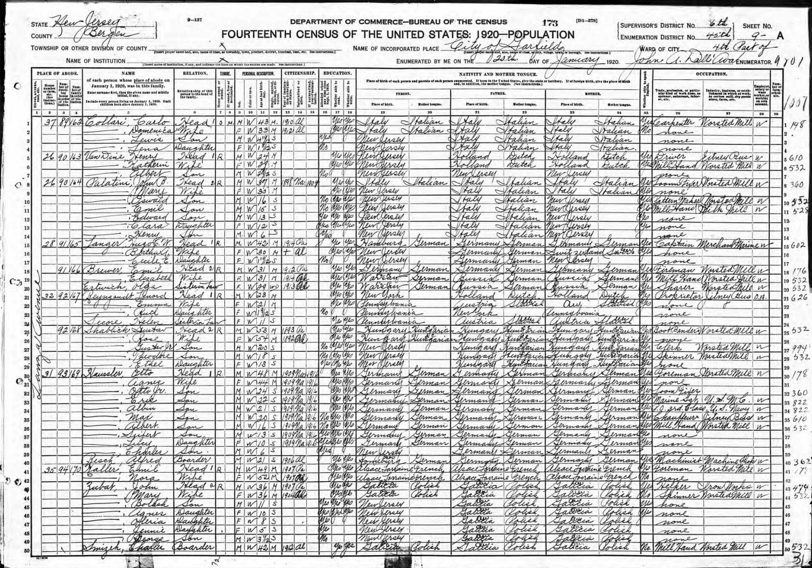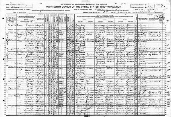Bauer Family 1920 Federal Census New Jersey, Lines 17-21