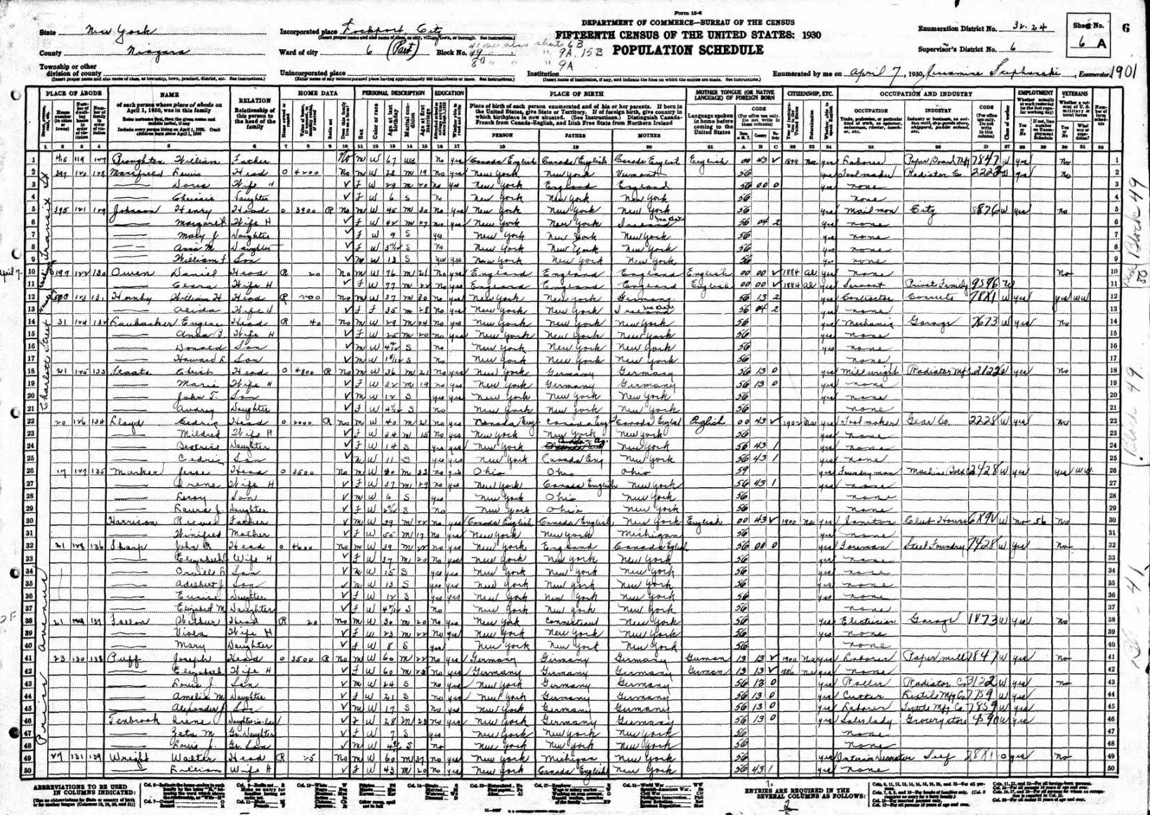 Teed Family 1930 Federal Census New York, Lines 29-33