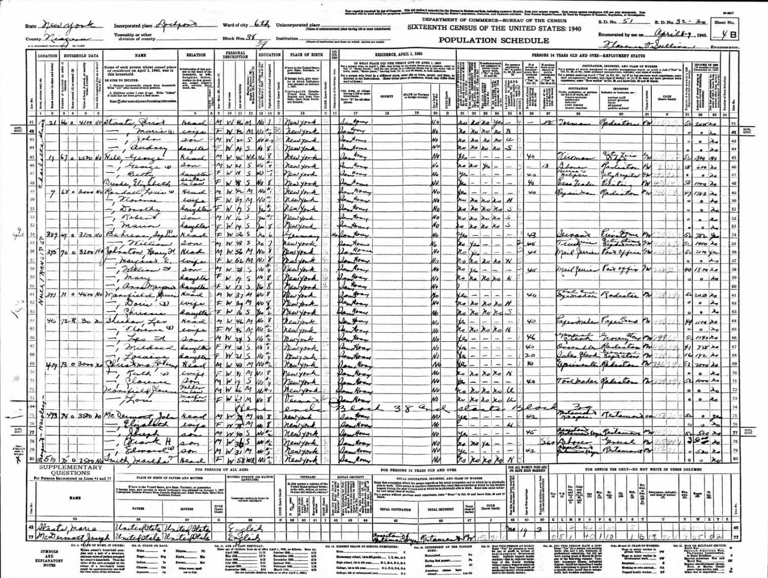 Staats Family 1940 Federal Census New York, Lines 41-44
