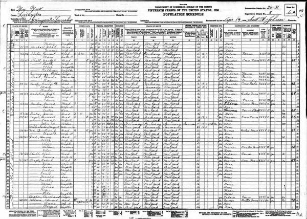 Teed Family 1920 Federal Census New York, Lines 32-37