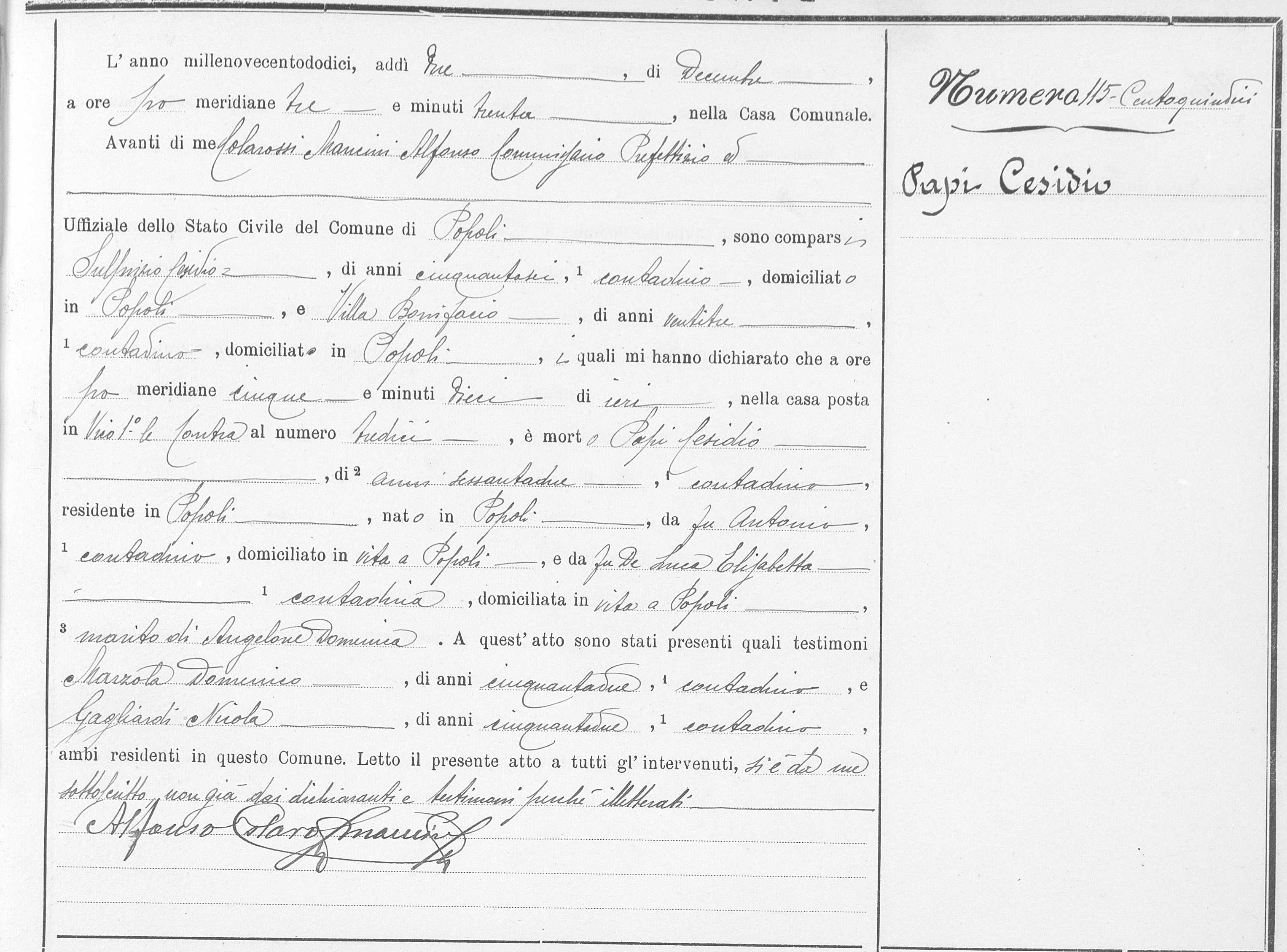 Cesidio Papi (Pope) was born in 1850 in Popoli, Pescara, Abruzzo, Italy. He and