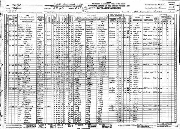 Anastasi Family 1930 Federal Census New York, Lines 42-50