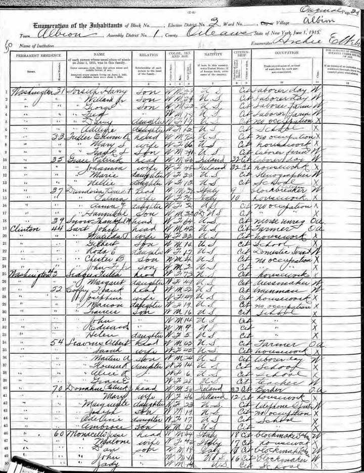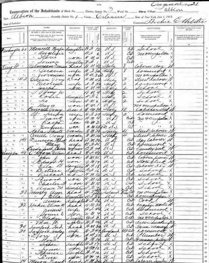 Monacelli Family 1915 State Census New York, Lines 46-50