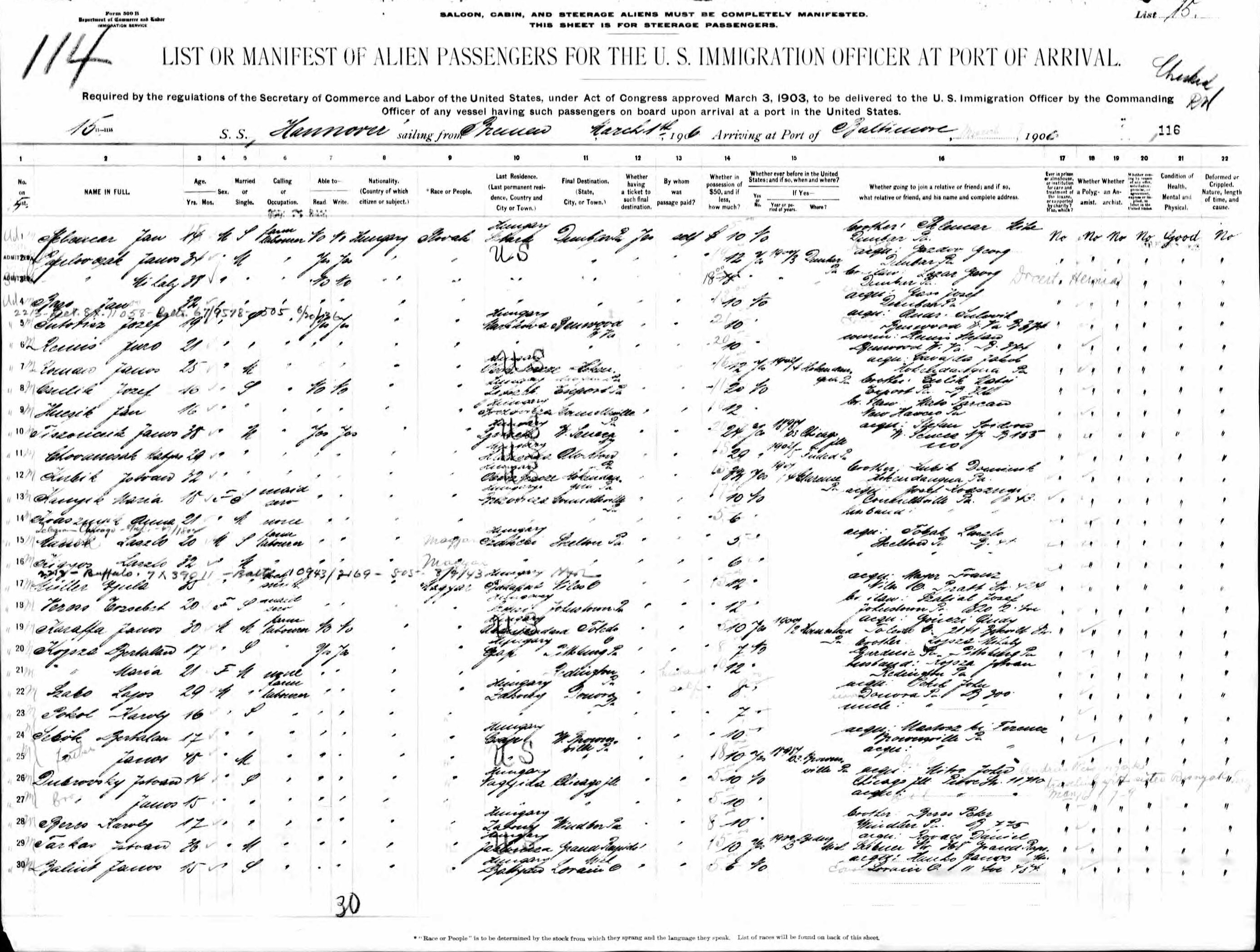 Szakacs Family 1906 Ship Departure Manifest, Lines 1-3