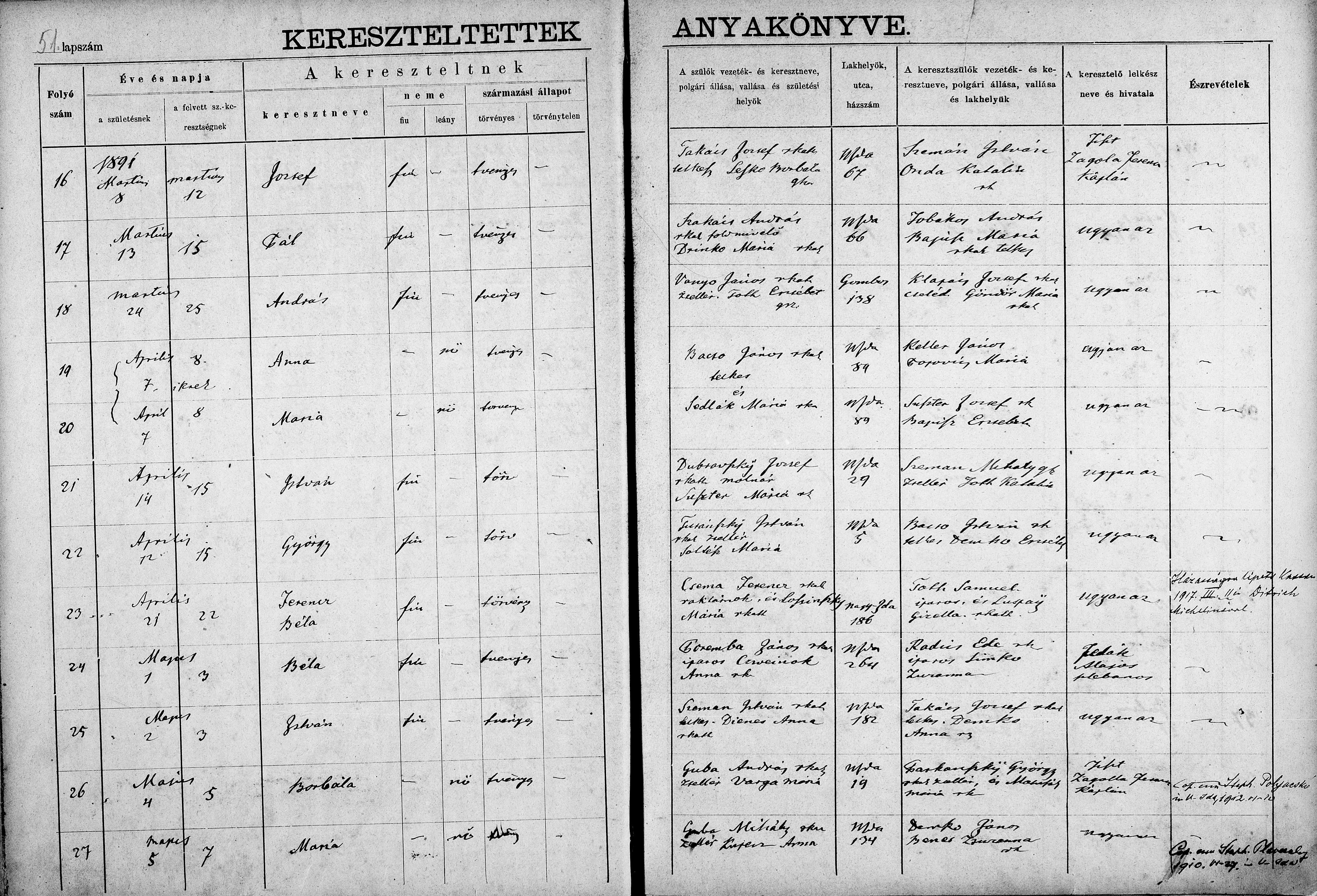 Andreas Szakacs were married on January 23, 1862 in Nagy Ida, Hungary. She died.