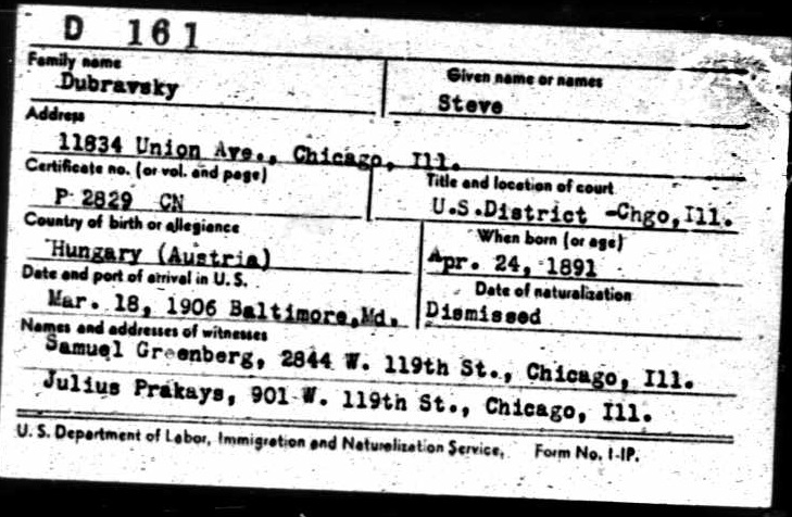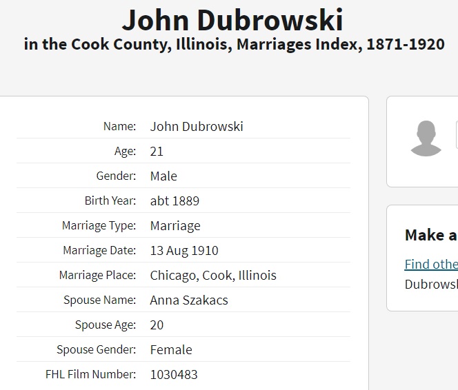 Janos "John" Dubravsky (Dubrowski) were married on August 13, 1910 in Chicago, Cook, Illinois, USA. She died.