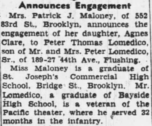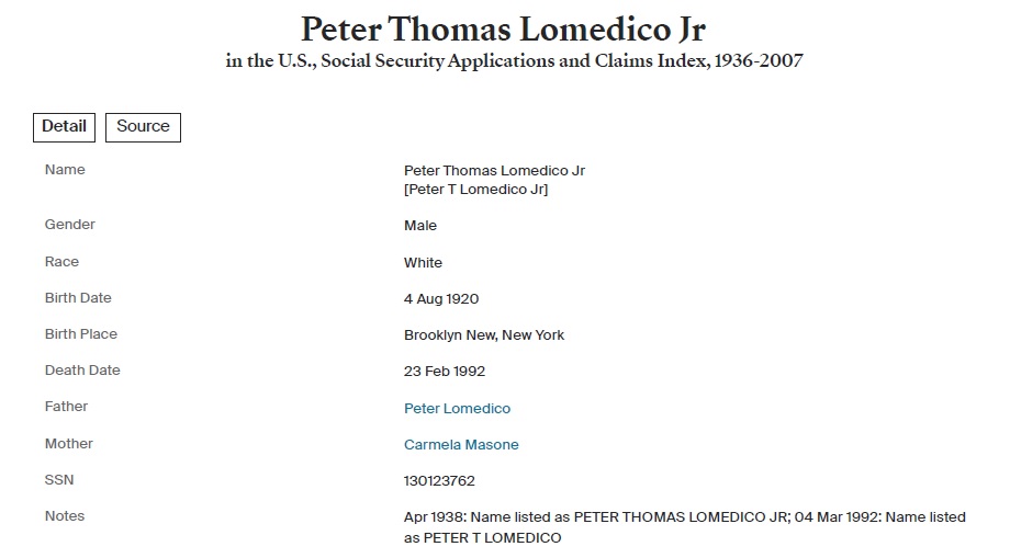 Peter Thomas Lomedico, Jr., was born on August 4, 1920 in Brooklyn, Kings, New York, USA. He and