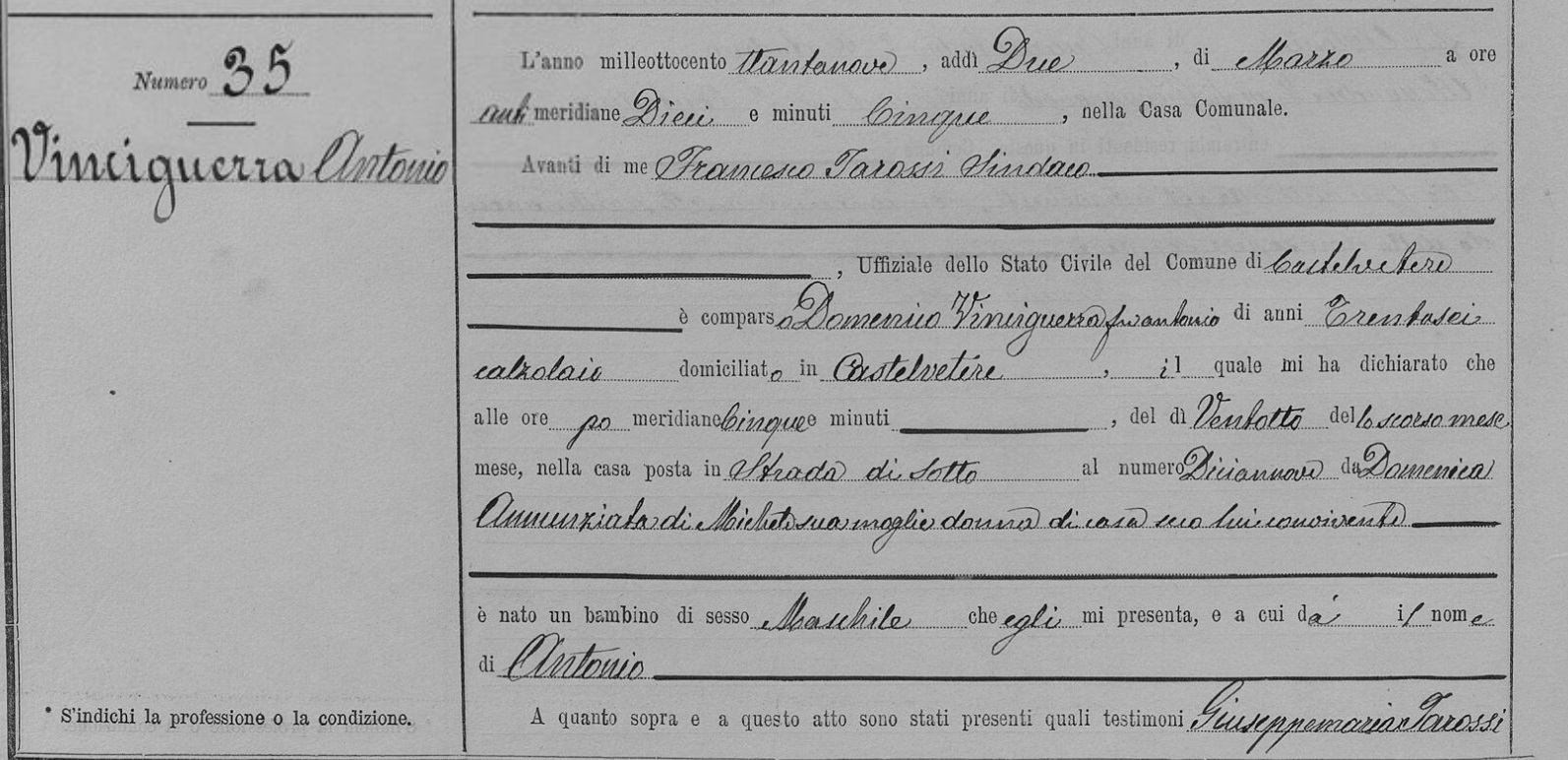 Antonio Vinciguerra was born on February 28, 1889 in Castelvetere in Val Fortore, Benevento, Campania, Italy. He and