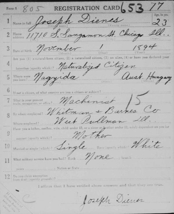 Dienes Family 1920 Federal Census Illinois, Lines61-64