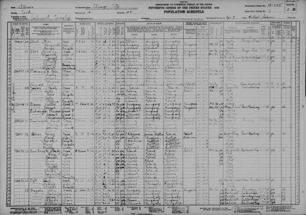 Rusnak Family 1920 Federal Census Illinois, Lines 65-69