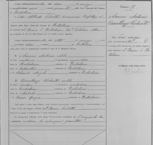 Franceso Maria Ancone were married on January 31, 1887 in Pietrelcina, Benevento, Campania, Italy. She died.