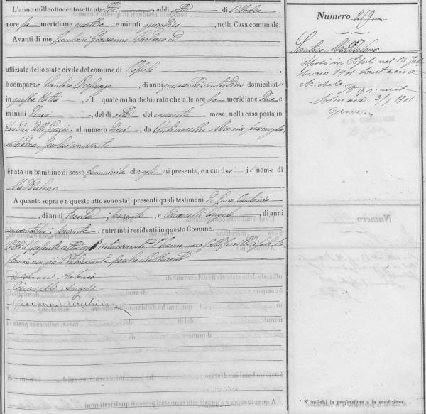 Maddalena Santoro were married on February 13, 1901 in Popoli, Pescara, Abruzzo, Italy. He died.