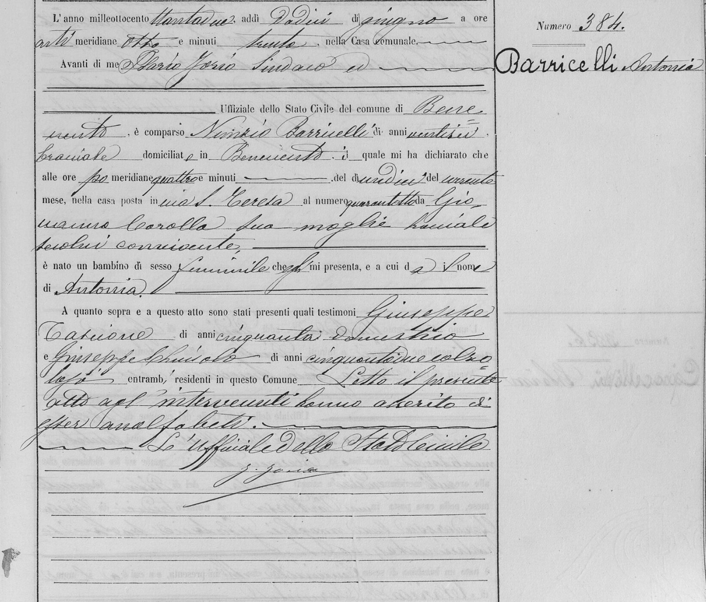 Antonia Barricelli was born on June 11, 1882 in Benevento, Benevento, Campania, Italy. She died.