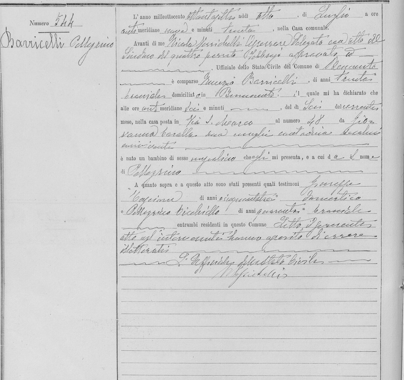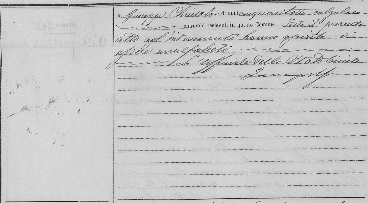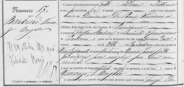 Rosa Maria Barbieri were married on January 16, 1900 in Piansano, Viterbo, Lazio, Italy. He died.