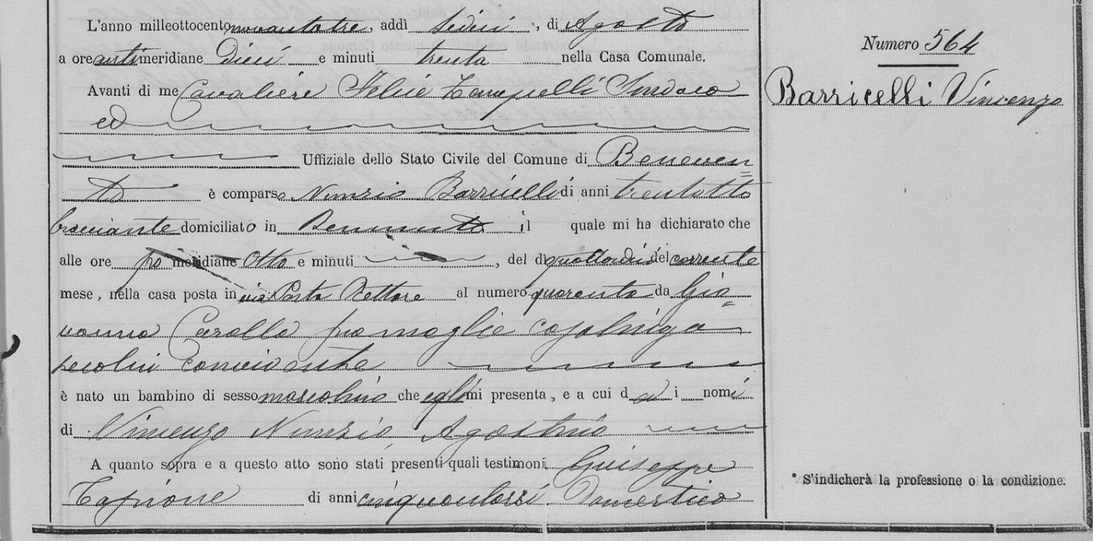Vincenzo Barbieri was born on February 8, 1878 in Piansano, Viterbo, Lazio, Italy. He and