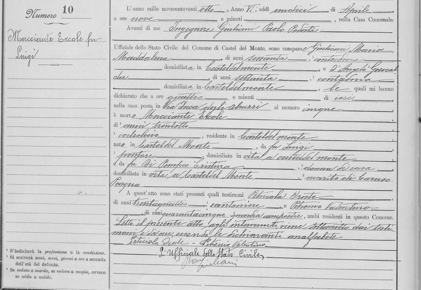 Ercole Mucciante was born in 1890 in Castel del Monte, L'Aquila, Abruzzo, Italy. He and