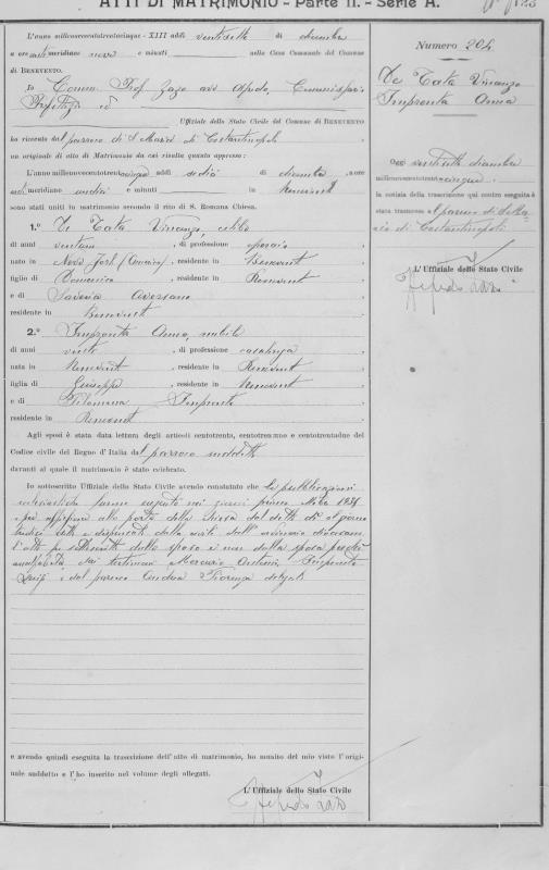 Vincenzo De Tata were married on December 16, 1935 in Benevento, Benevento, Campania, Italy. She died.