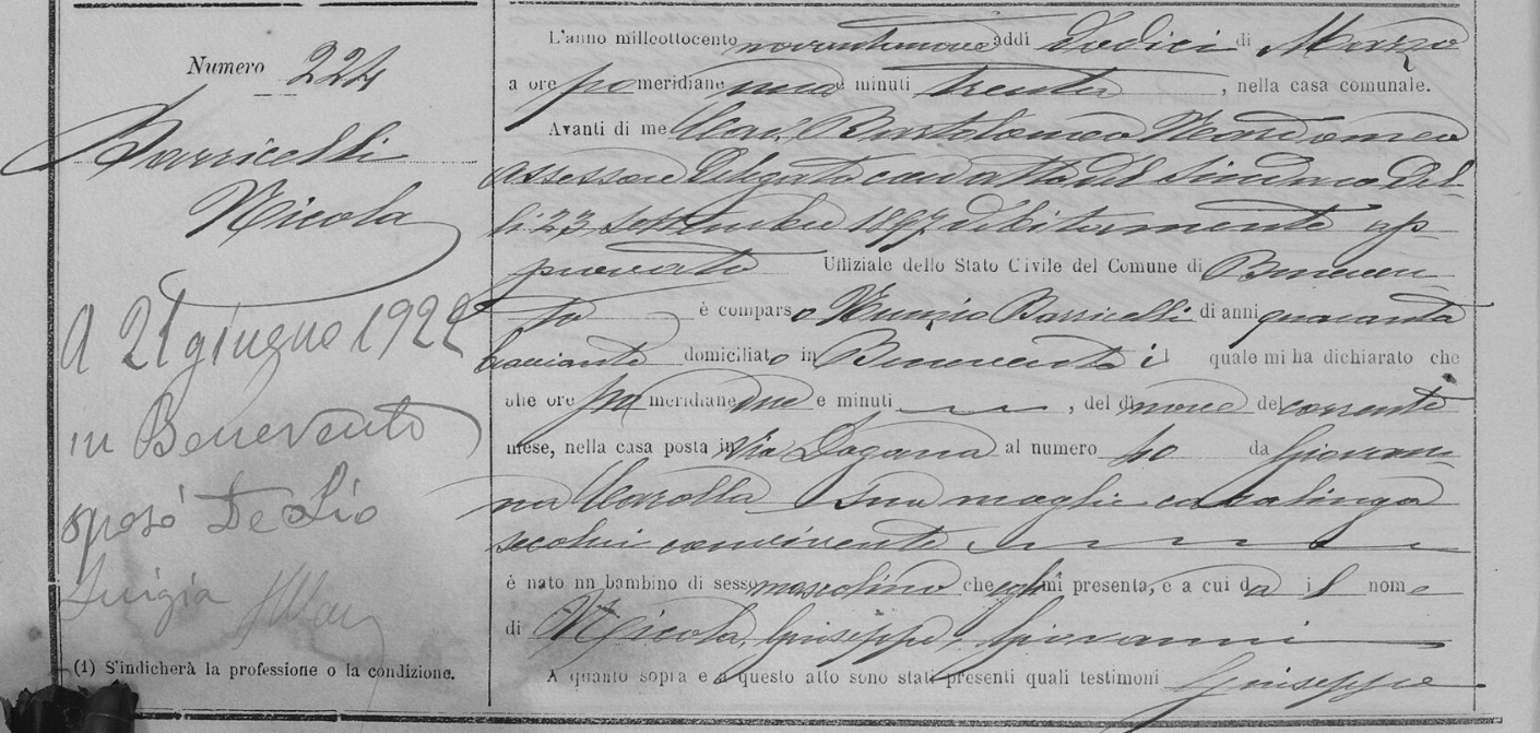 Luigia De Sio were married on June 21, 1922 in Benevento, Benevento, Campania, Italy. He died.