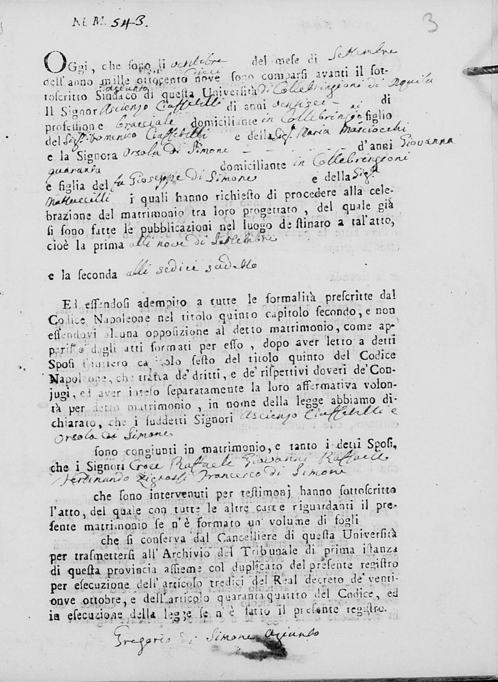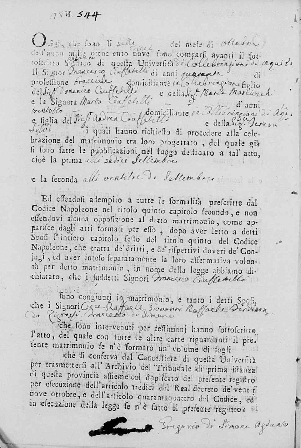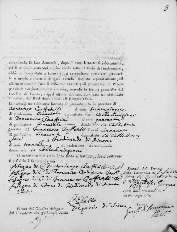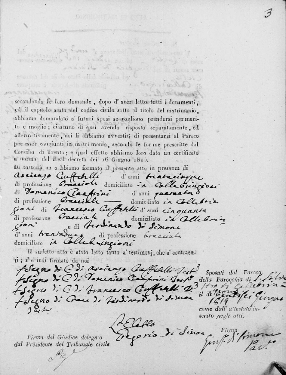 Orsola Di Simone were married on September 23, 1810 in Collebrincioni, L'Aquila, Abruzzo, Italy. He died.