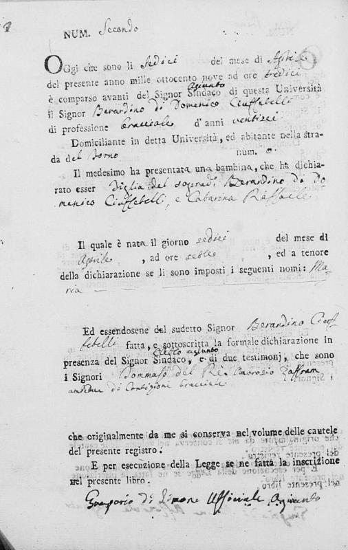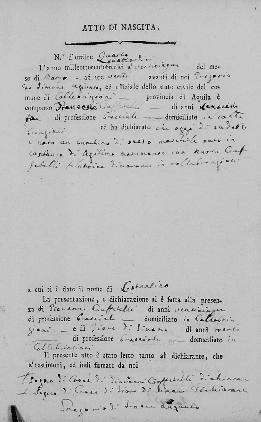 Berardino Ciuffetelli was born in 1783 in Collebrincioni, L'Aquila, Abruzzo, Italy. He and