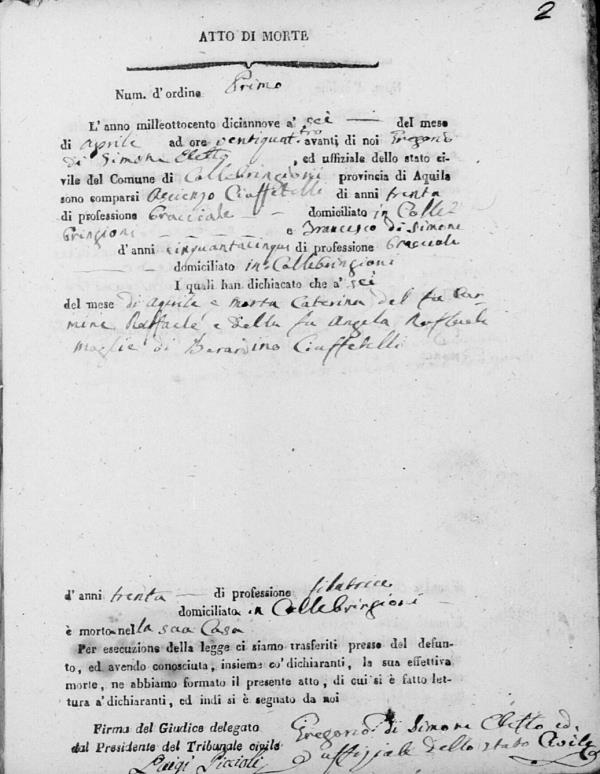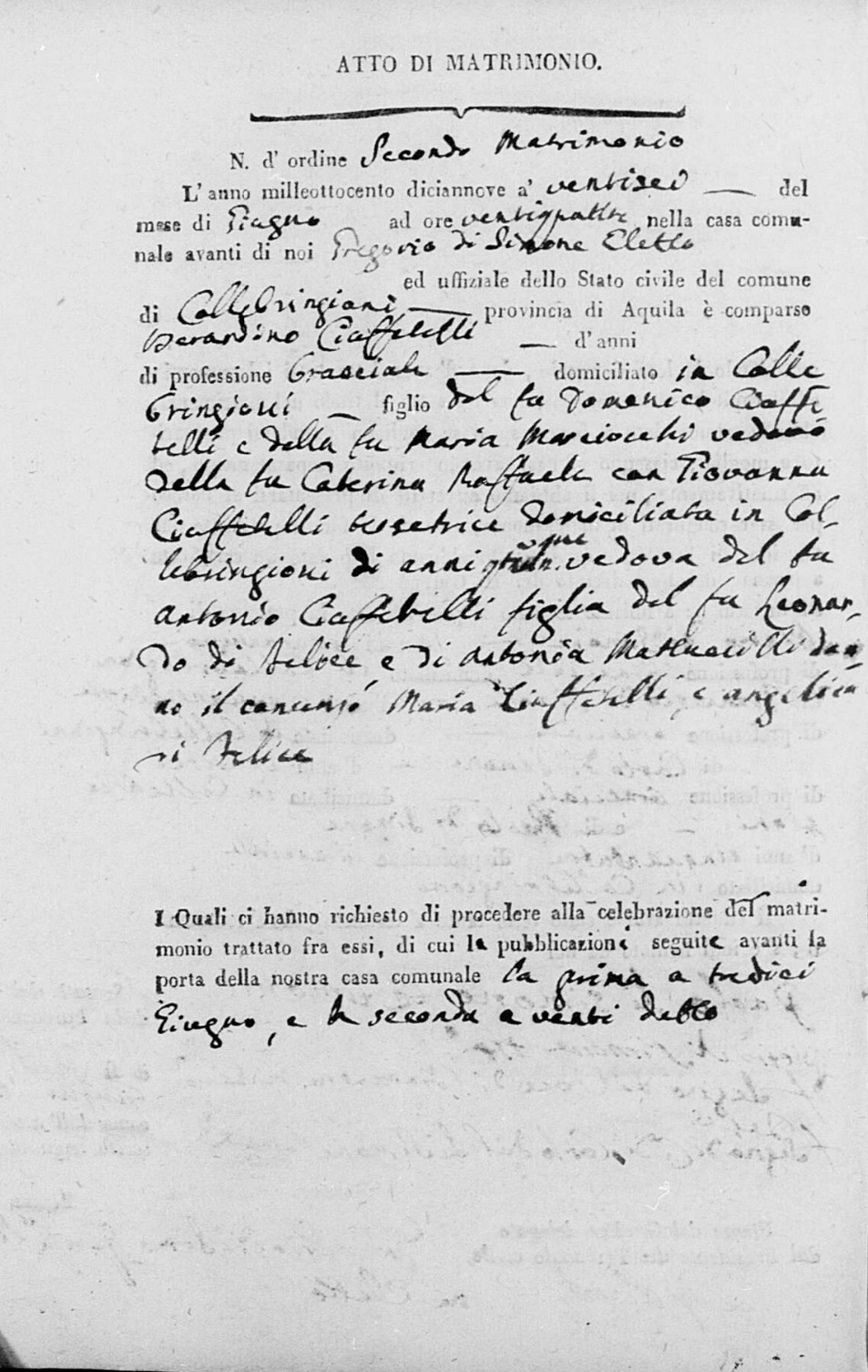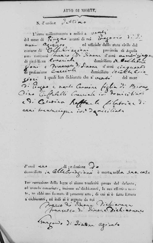 Berardino Ciuffetelli were married on June 26, 1819 in Collebrincioni, L'Aquila, Abruzzo, Italy. She died.