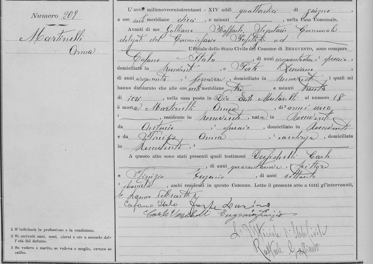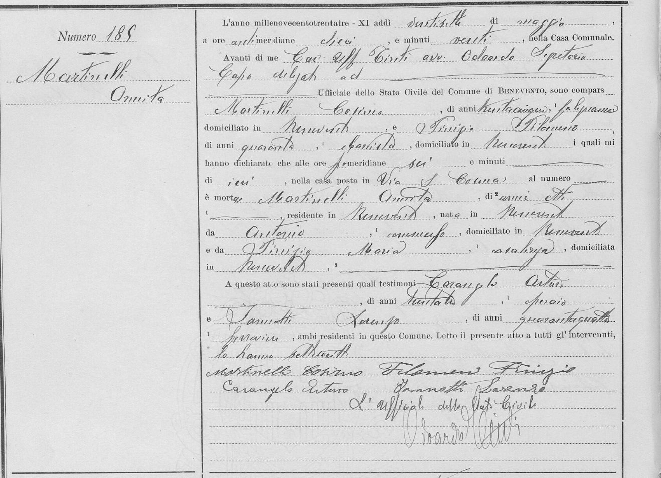 Grazia Martinelli were married on June 28, 1934 in Benevento, Benevento, Campania, Italy. He died.