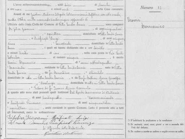 Domenico Ursini was born in 1862 in Villa Santa Lucia Degli Abruzzi, L'Aquila, Abruzzo, Italy. He and