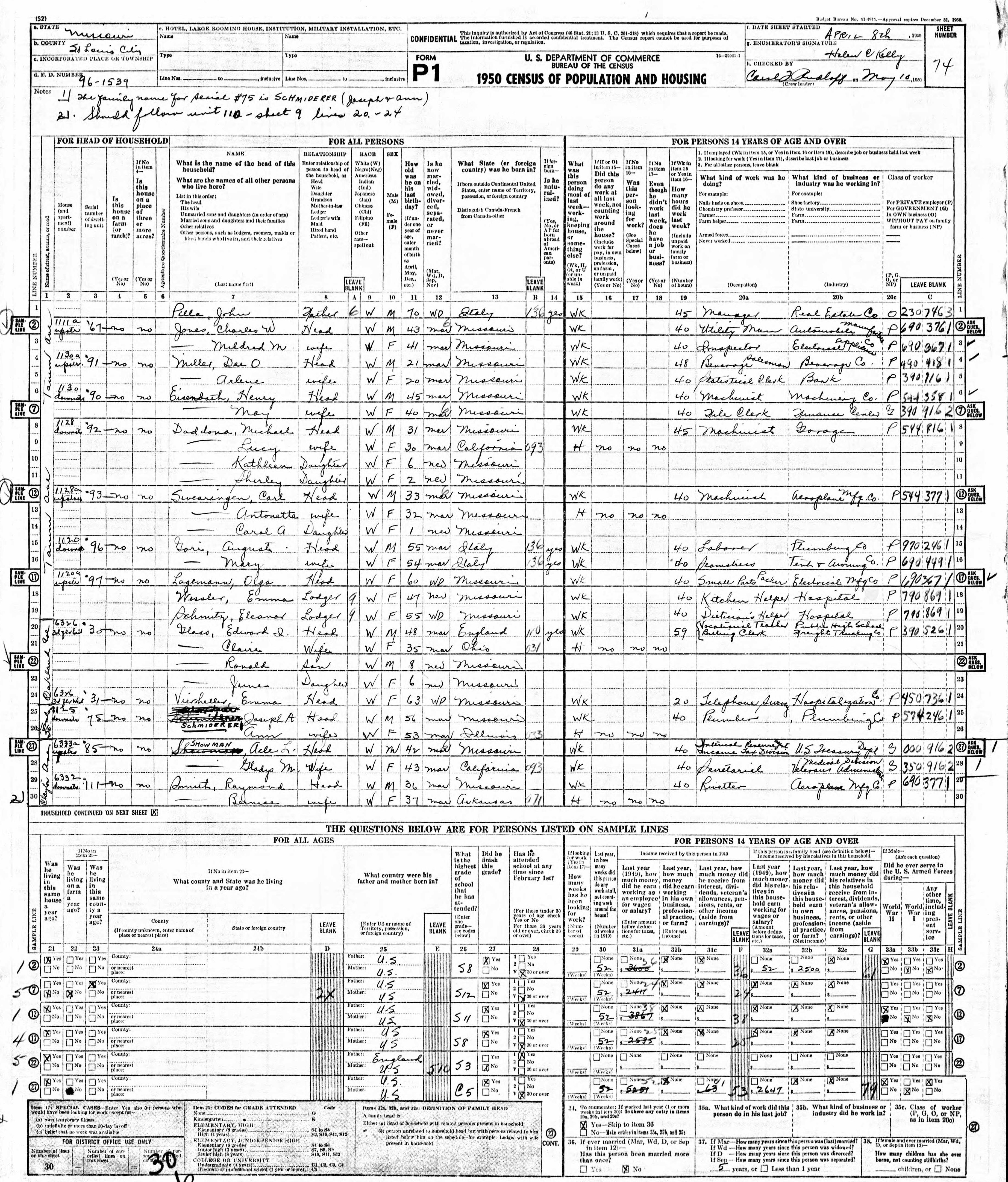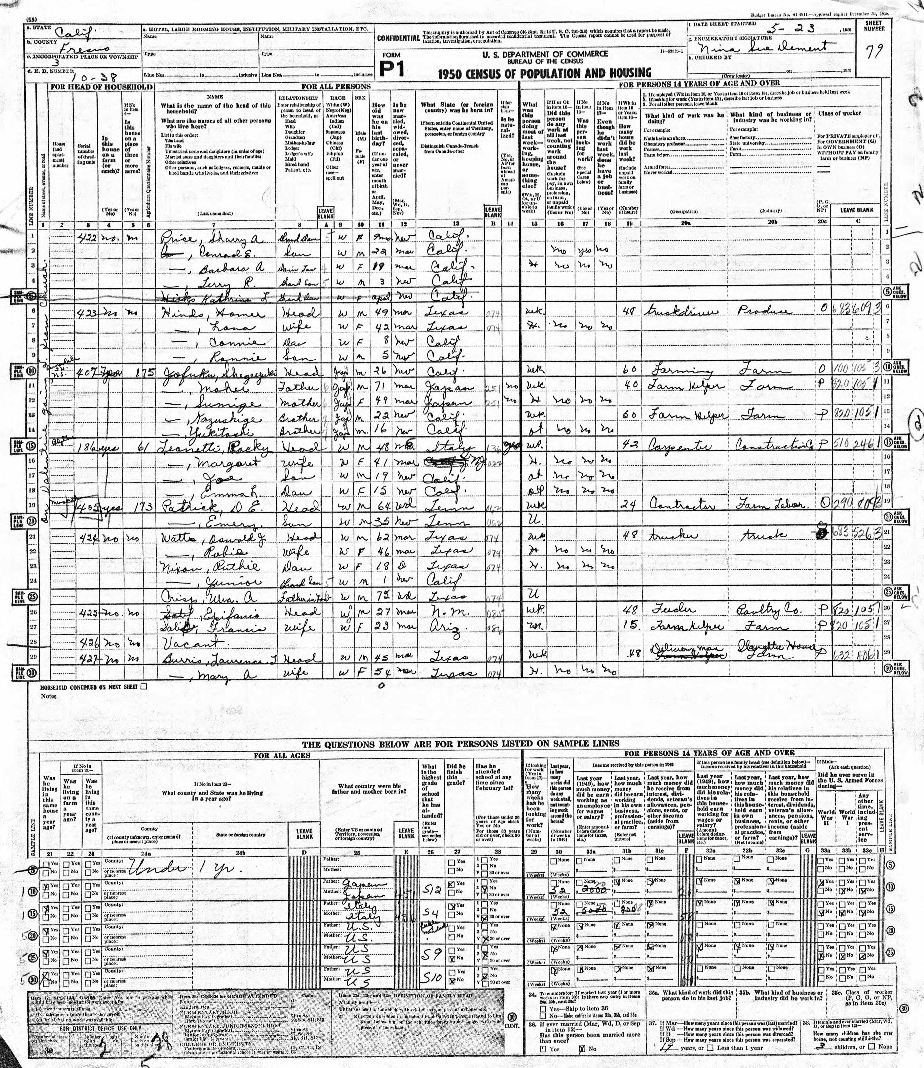 Leonetti Family 1950 Federal Census California, Lines 15-18