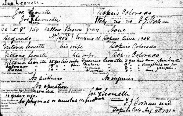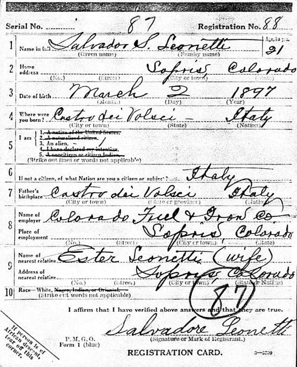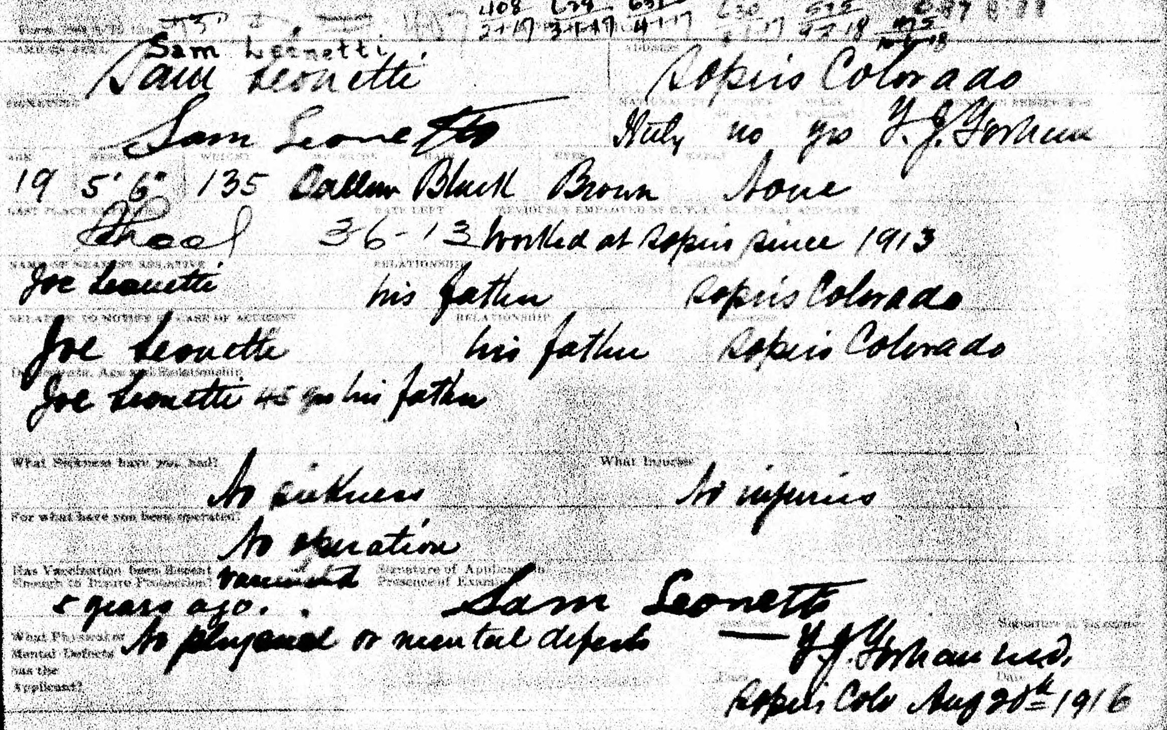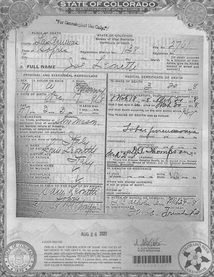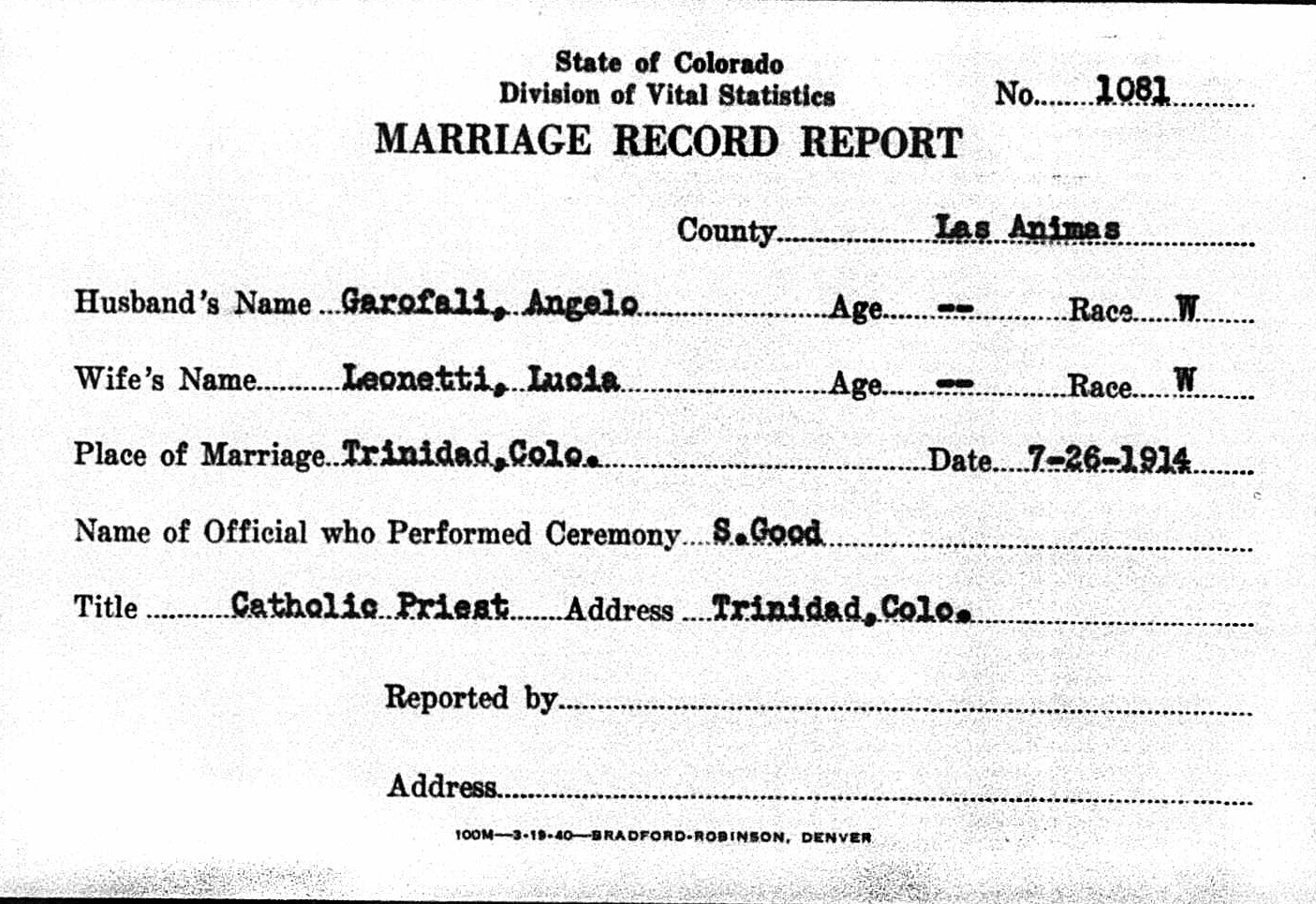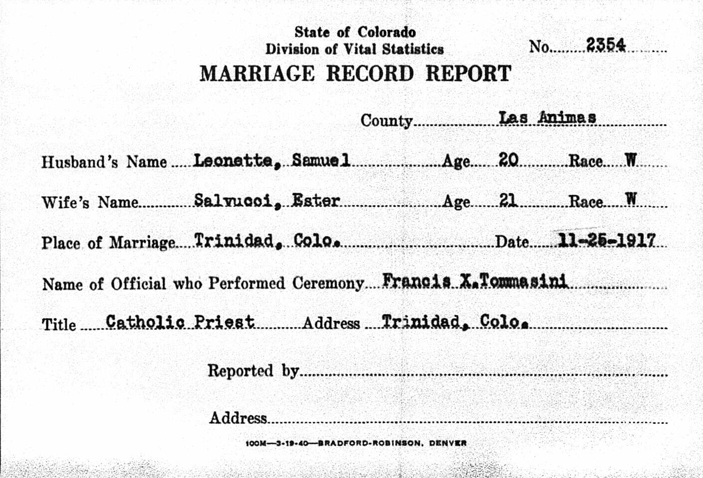 Salvatore "Sam" Leonetti were married on November 25, 1917 in Trinidad, Las Animas, Colorado, USA. She died.