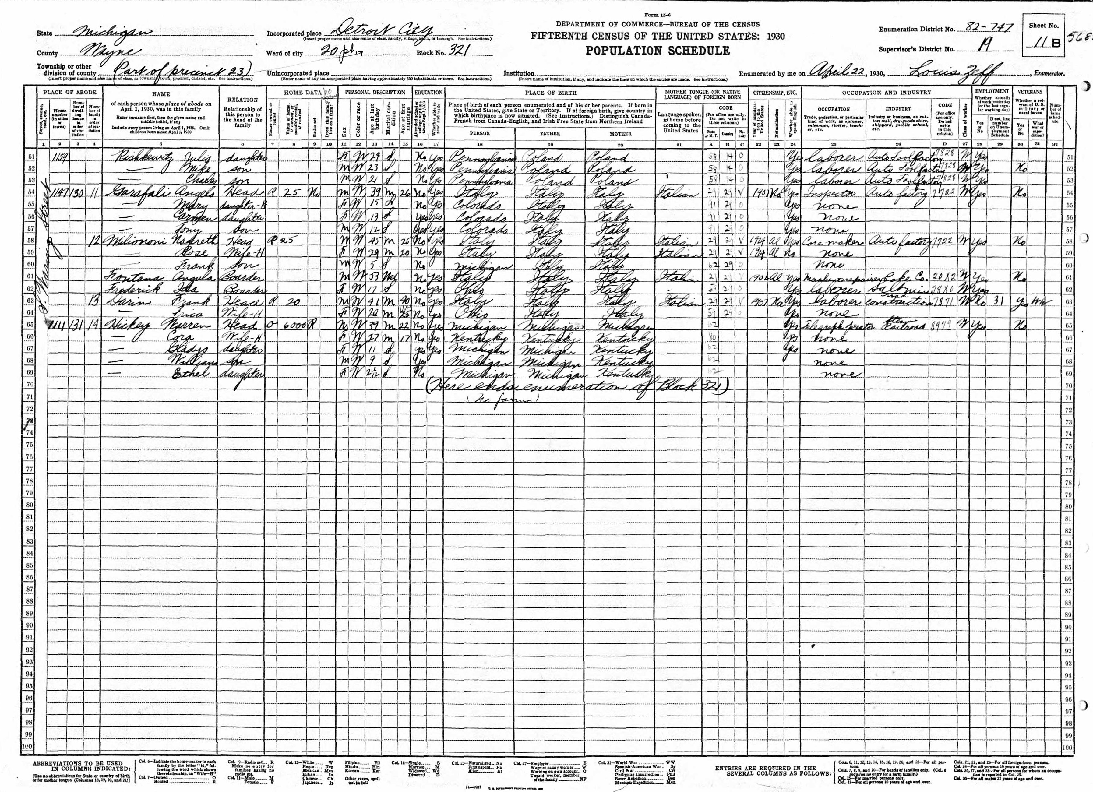 Garofali Family 1930 Federal Census Michigan, Lines 54-57
