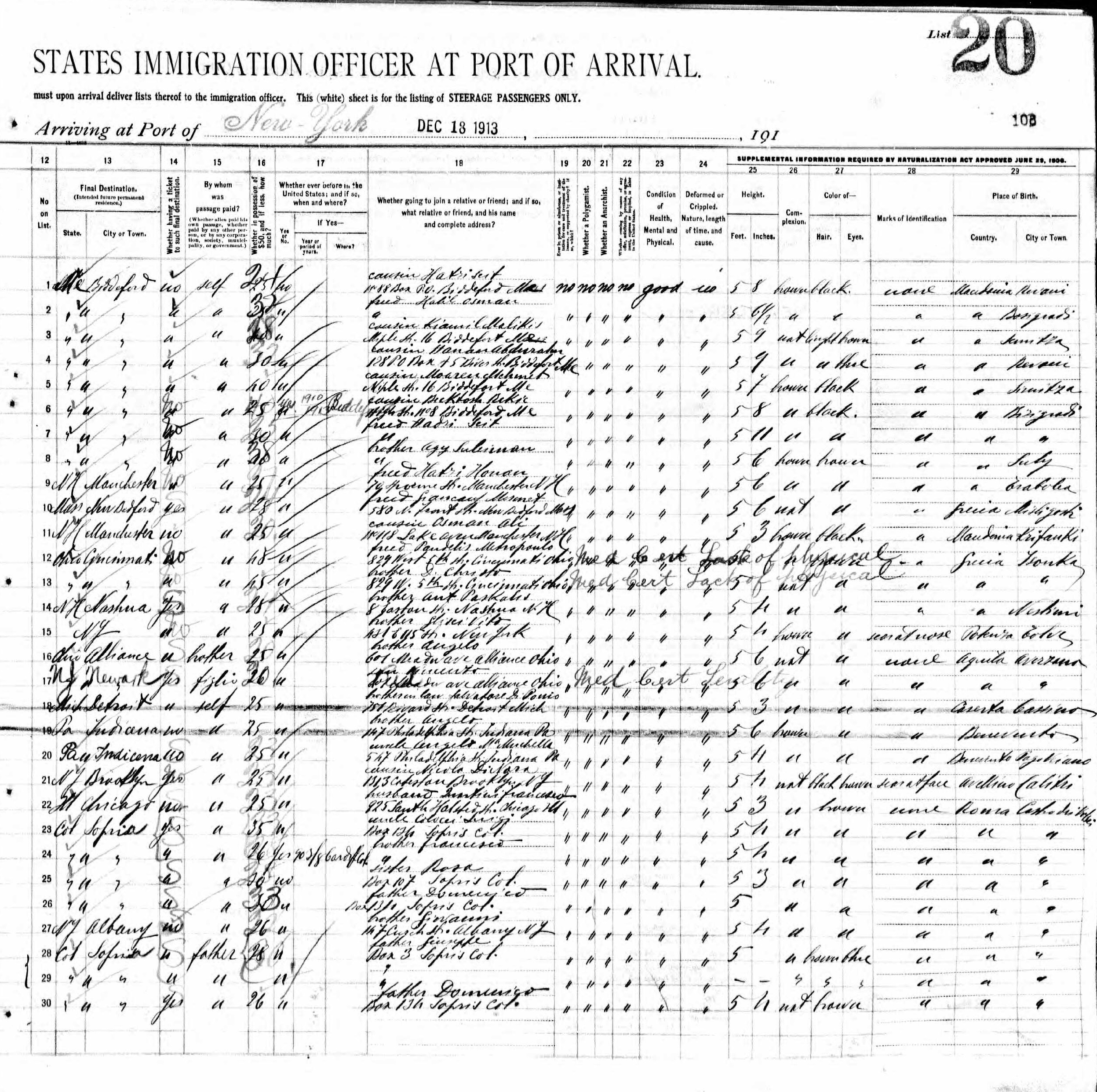 Leonetti Family 1913 Ship Arrival Manifest, Lines 28-29