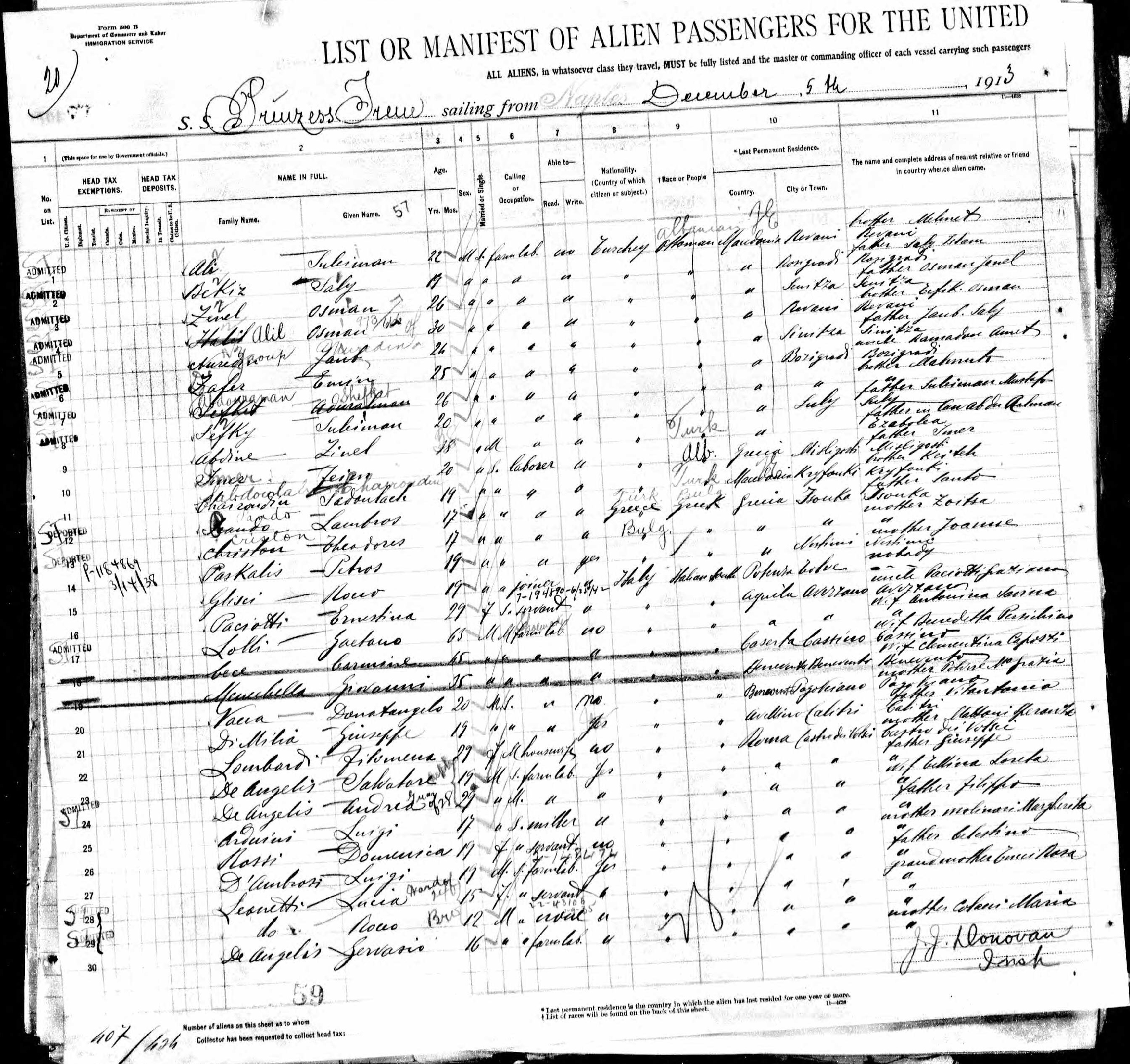 Leonetti Family 1913 Ship Departure Manifest, Lines 28-29