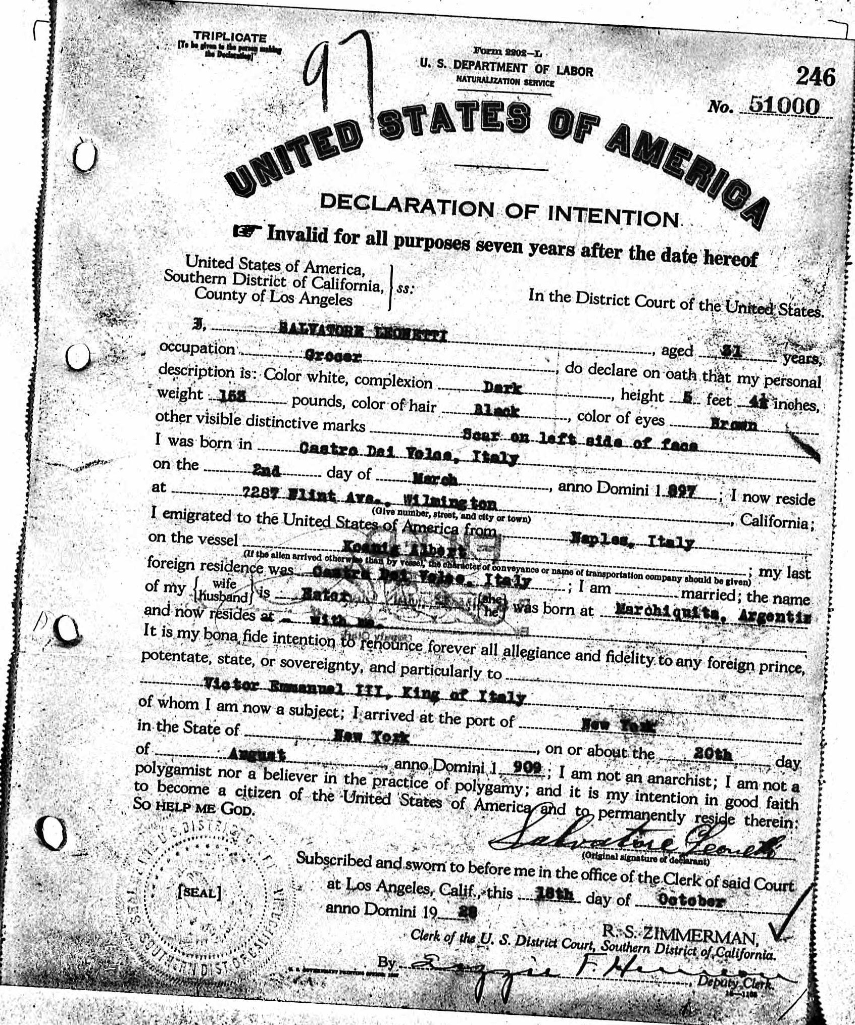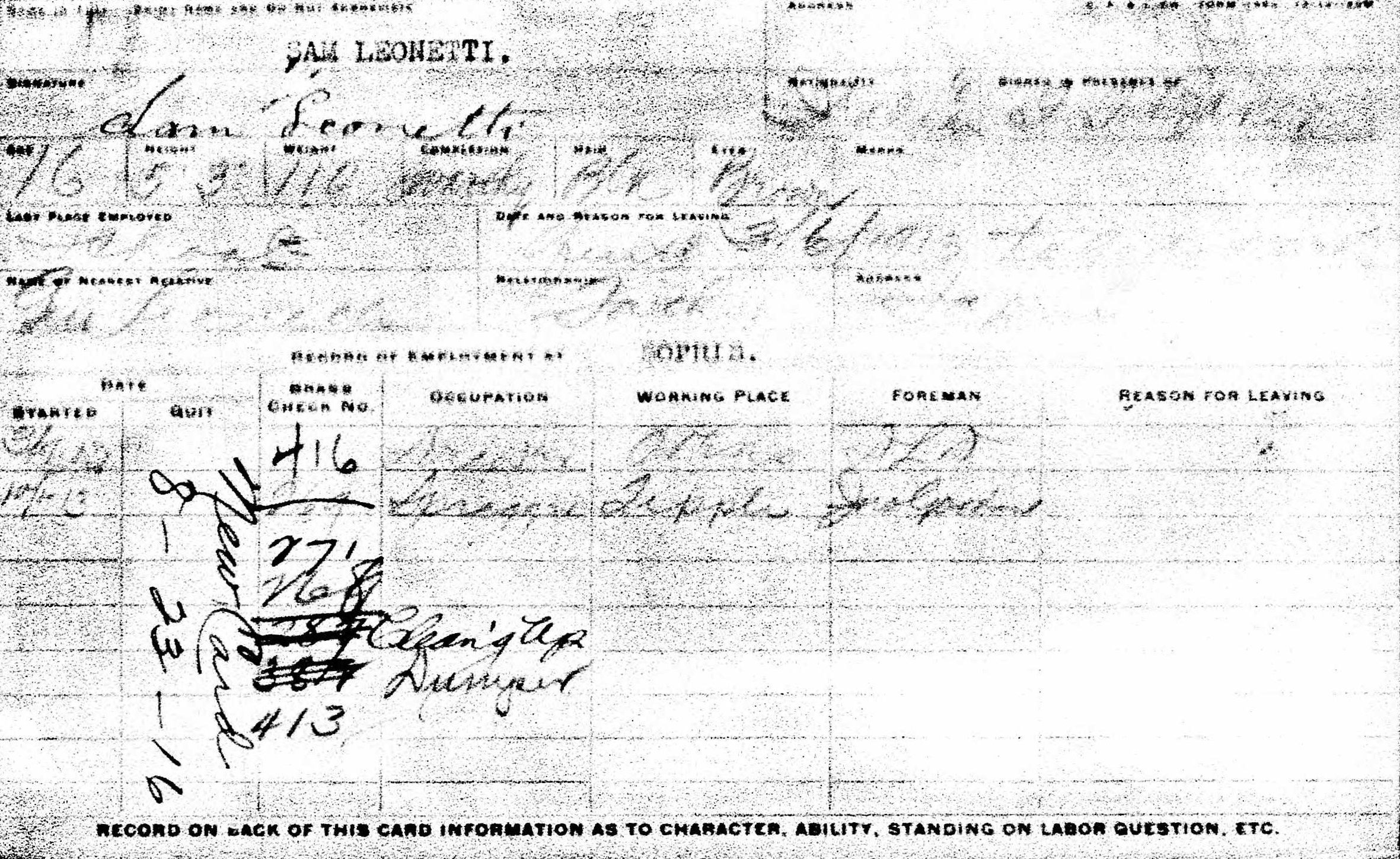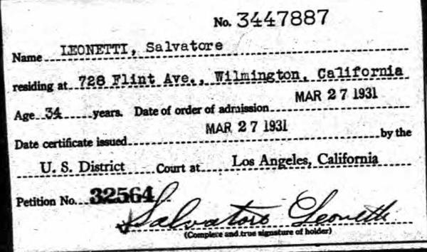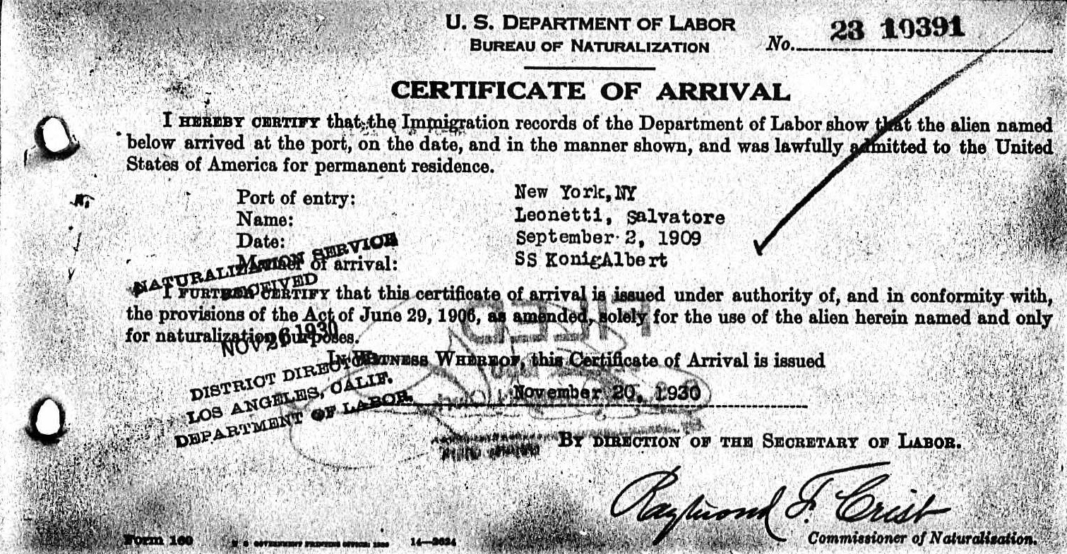 Salvatore "Sam" Leonetti was born on March 2, 1897 in Castro dei Volsci, Frosinone, Lazio, Italy. He and