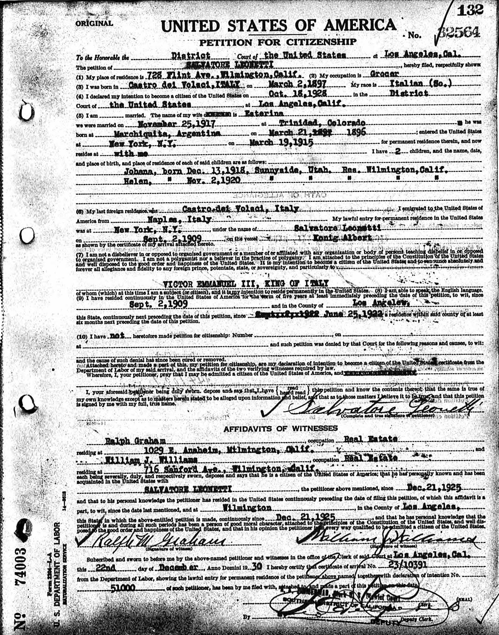 Giuseppe "Joseph" Leonetti was born on December 17, 1871 in Castro dei Volsci, Frosinone, Lazio, Italy. He and
